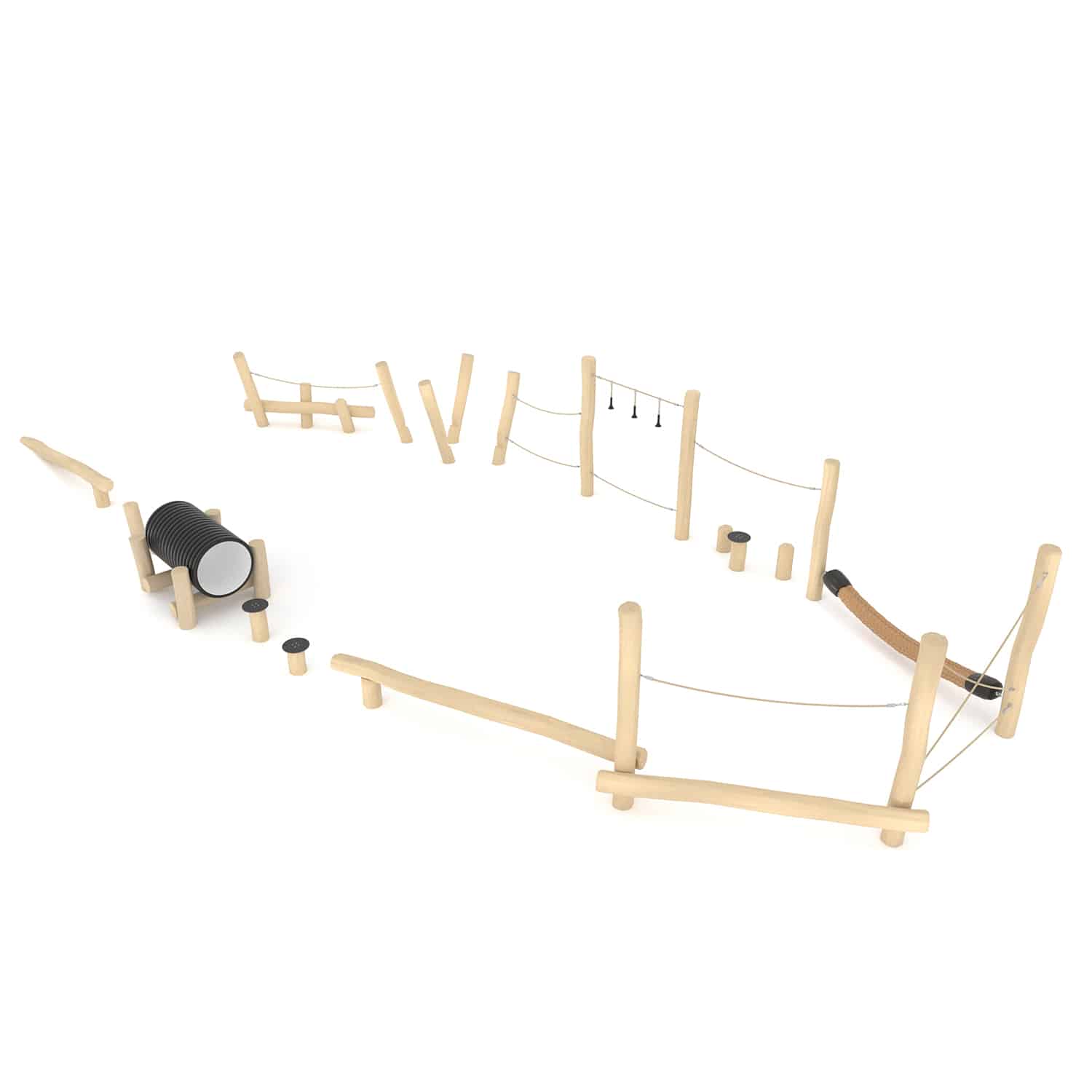 Een parcours biedt kinderen de kans om een reeks speeltoestellen te ontdekken die met elkaar verbonden zijn. Of het nu gaat om balanceren, klimmen of springen, een parcours daagt kinderen uit om actief en creatief te spelen.
