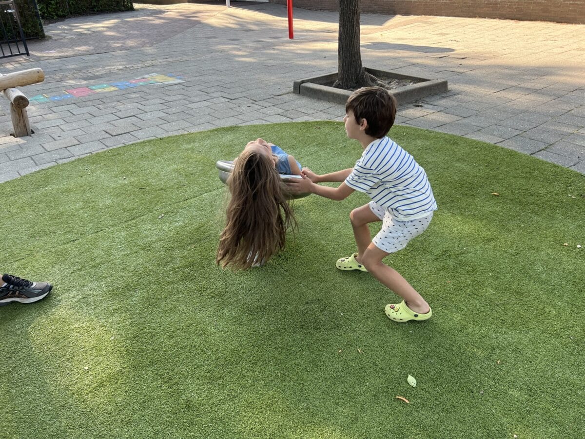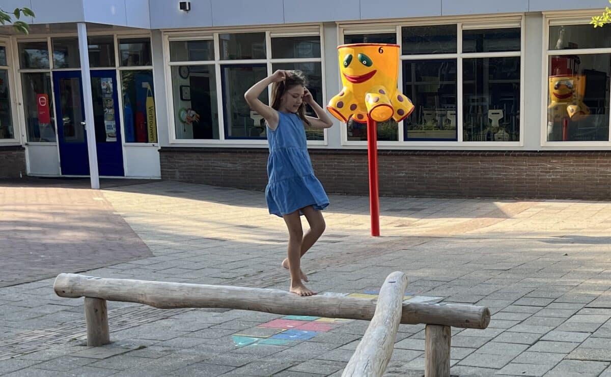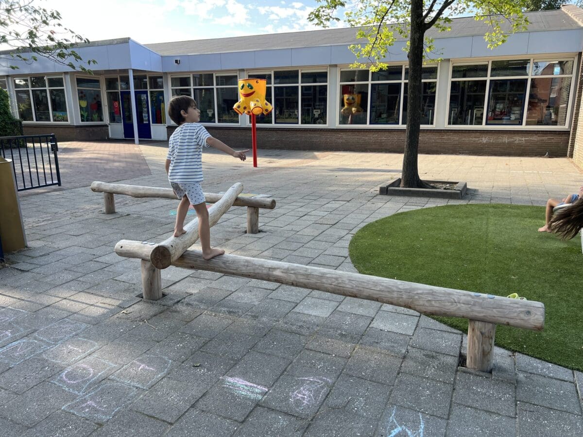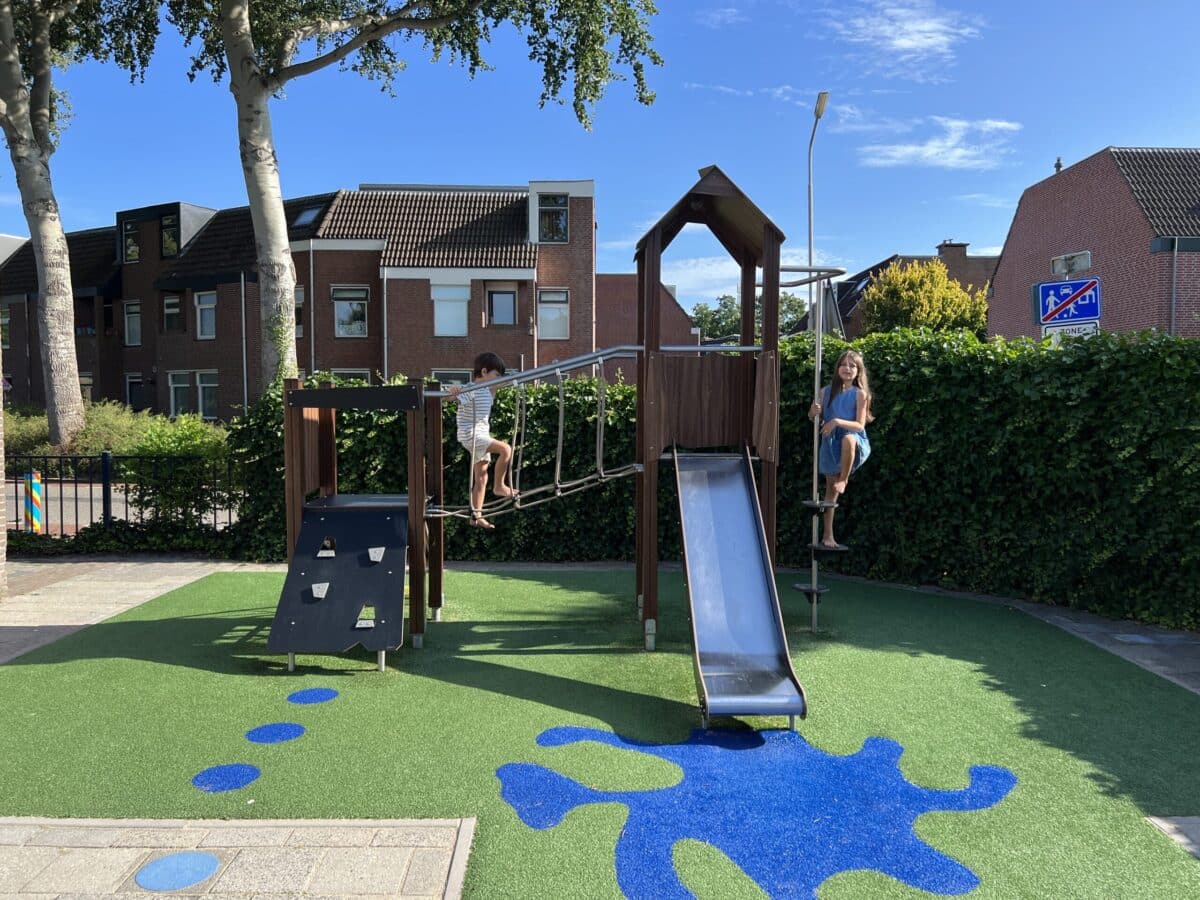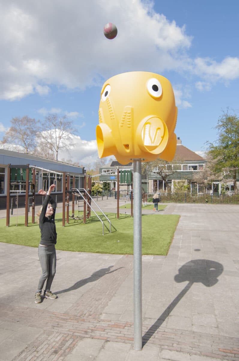 Na bijna 20 jaar was het schoolplein van BS Driespan toe aan een nieuwe inrichting. Opnieuw mochten wij dit voor de school doen. Voor het zover was is eerst door Vreeker Bestrating & Groen uit Hem het voorwerk gedaan, de (te) grote bomen zijn weggehaald, bestrating aangepast en opnieuw gelegd, plantvakken gemaakt en een aantal nieuwe bomen geplaatst. Daarna zijn de speeltoestellen geplaatst. Op het onderbouwplein zijn een Evenwichtparcours WD1461 in een mosgroene uitvoering en speeltoestel Wooden WD1408 in houtprint uitstraling geplaatst. Bij dit klimtoestel is een valdempende kunstgras ondergrond aangelegd waarin een aantal blauwe figuren zijn aangebracht. Ook zijn gelijktijdig een drietal 5 meter hoge Robinia palen in het plein geplaatst. Hier worden in de zomermaanden een aantal schaduwdoeken aan opgehangen. Het bovenbouwplein heeft een groot nieuwe klim-klautercombinatie WD1452 gekregen, een duikelrek WD1428, de supergave Spinnerbowl HP0710 ,een drievoudige evenwichtbalken set RB1257 en de vrolijke inktvisballenvanger SL0809. Valdempend kunstgras zorgt voor een veilige ondergrond waar nodig.
