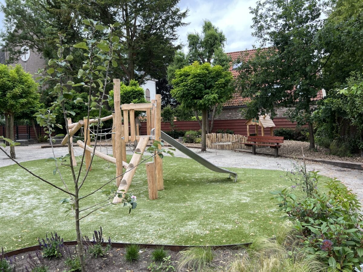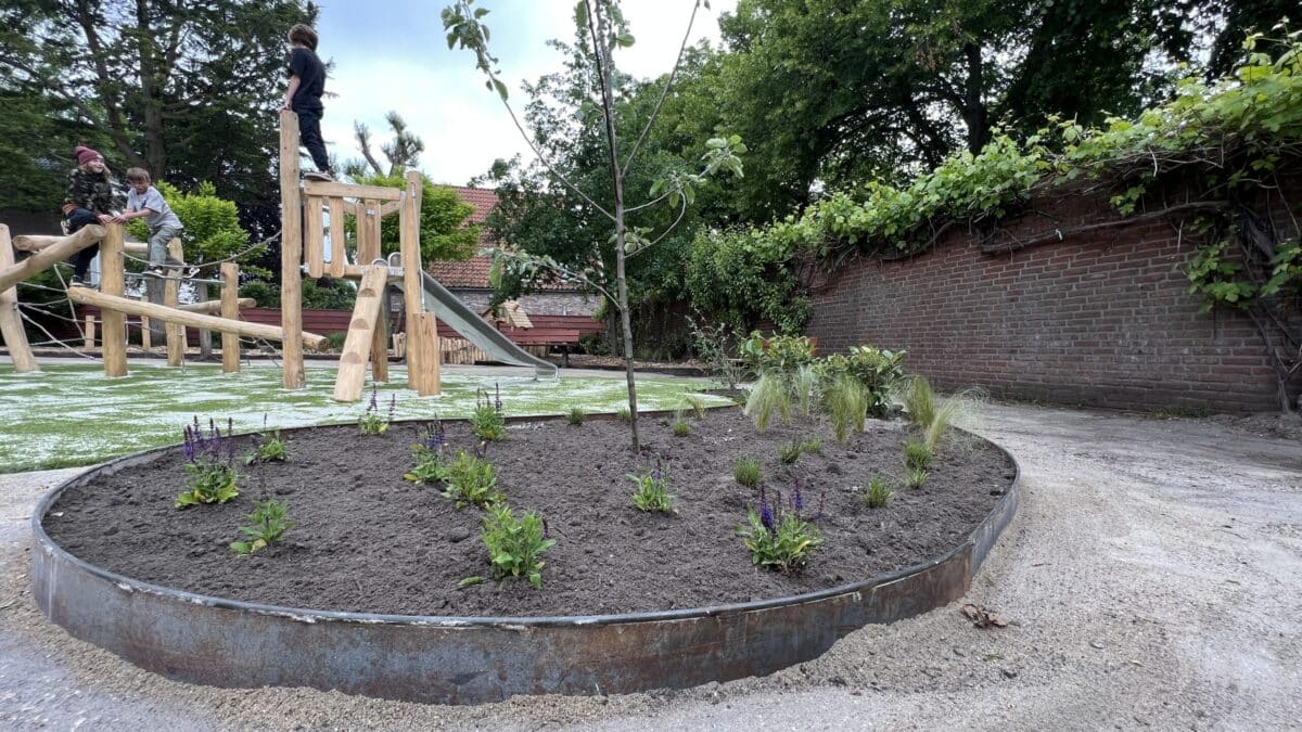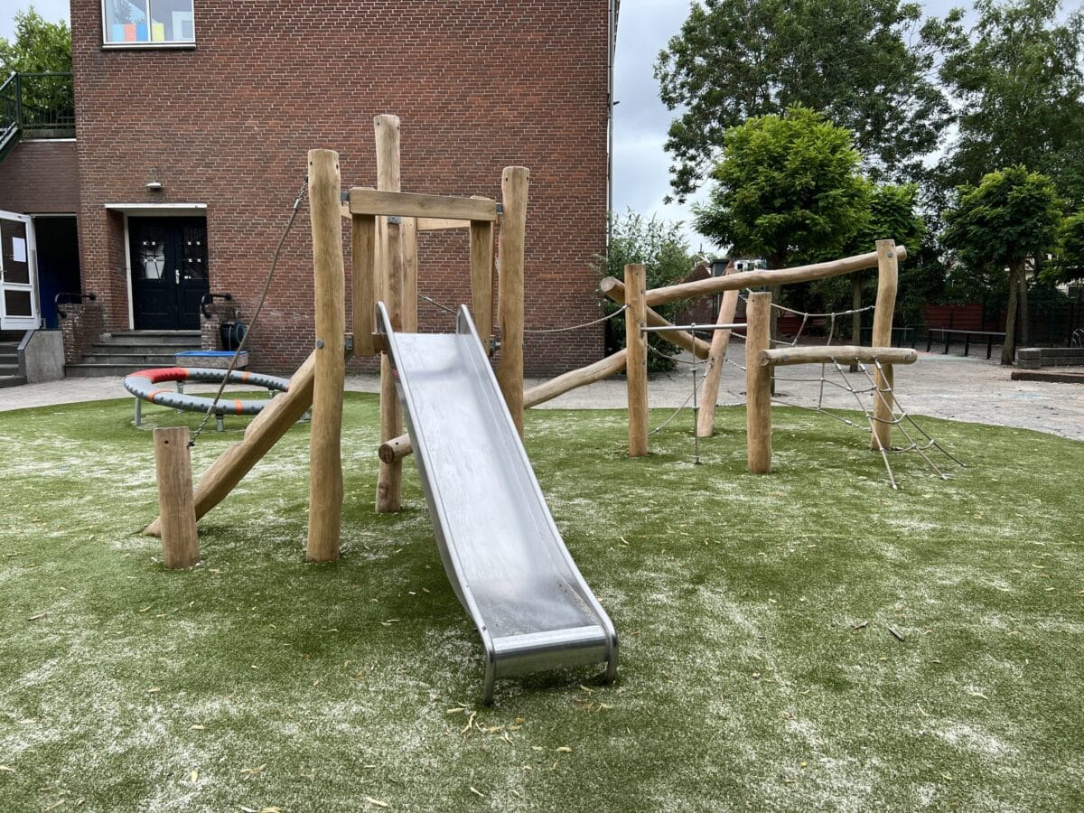 Bij de Nieuwe School in Edam is een complete “Schoolplein-Make-Over” gedaan. In goede samenwerking met Vreeker BV zijn naast nieuwe speeltoestellen ook nieuwe borders, beplanting, bomen, houtsnippers en valdempend kunstgras aangebracht. Speeltoestellen bestaan uit Speelhuis RB1201Tweevoudig duikelrek RB1264 en Klim en glijcombinatie RB1311 en een draaischijf. Het speelhuis is gecombineerd met diverse stapstenen en een zandbak; om dit binnen de normen te kunnen doen is hiervoor een locatie EN1176 certificaat verstrekt door Keurmerk instituut. Na de zomer wordt nog een klimmuur aangebracht.