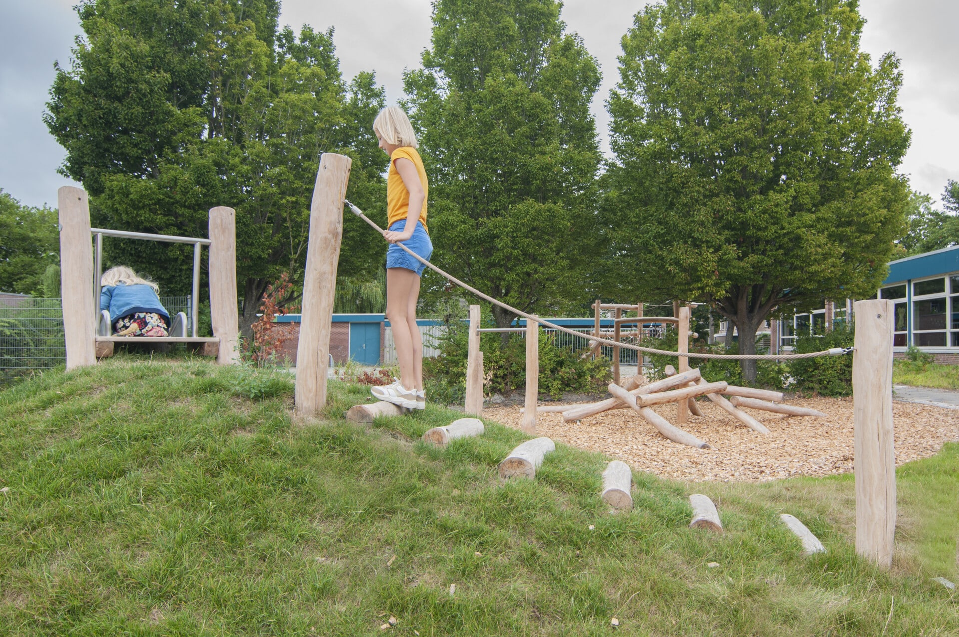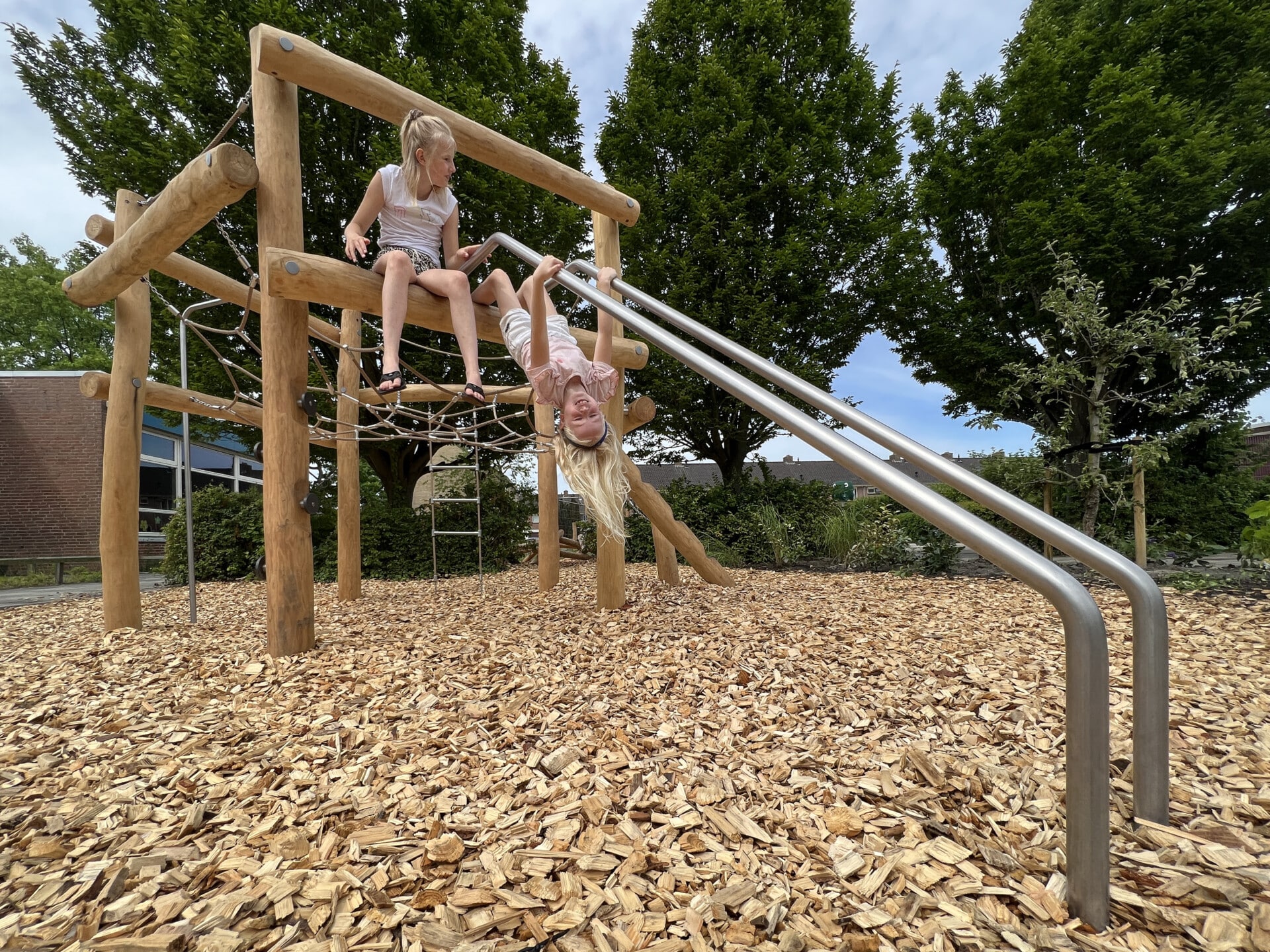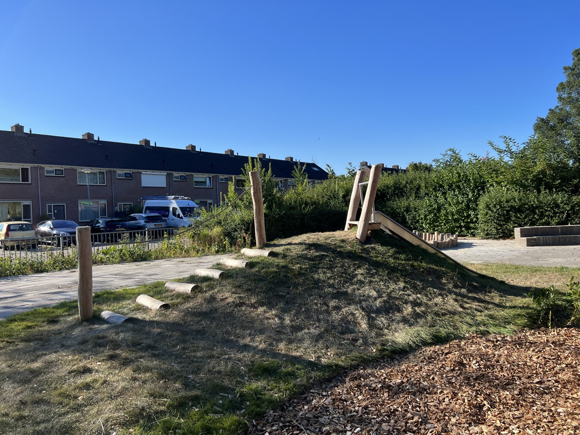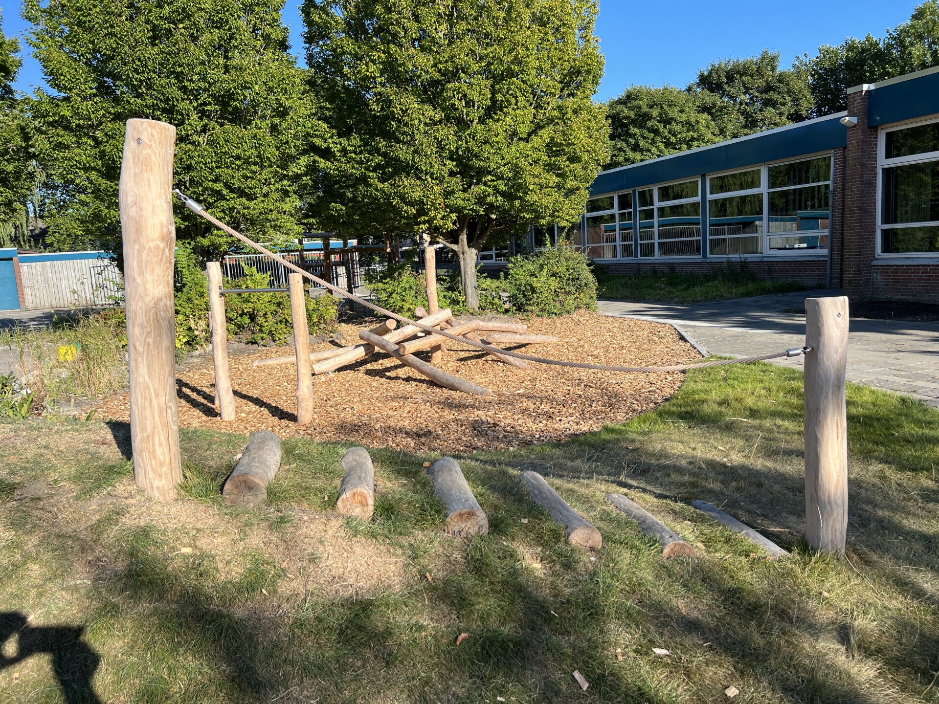 BS de Wendel in Bovenkarspel was aan een flinke opknapbeurt van het plein toe.  Samenwerking van de school met vrijwillige ouders zorgden ervoor dat er meer budget overbleef voor de toestellen.  Opdracht was een natuurlijke speelplek te maken met uitdagende circulaire Robinia toestellen.  Een dikke laag EN1177 certificeerde houtsnippers zorgt voor de nodige valdemping bij de toestellen. Beplanting op en rondom het plein is tevens vernieuwd.  Eindresultaat is een heerlijke, uitdagende speelplek waar voor elk kind leuke speelaanleidingen te vinden zijn.