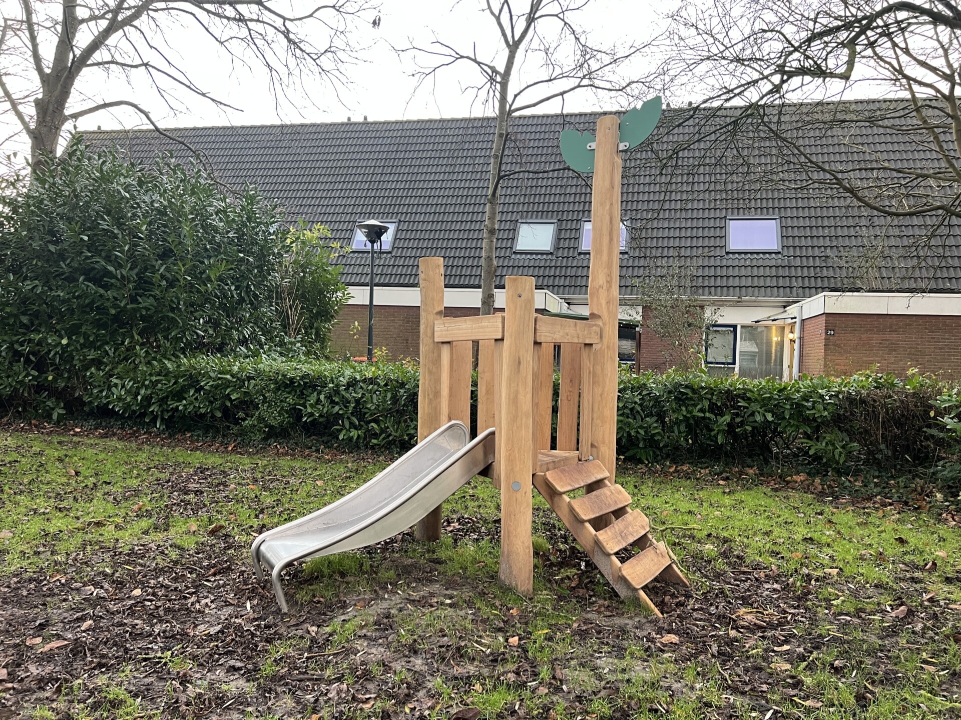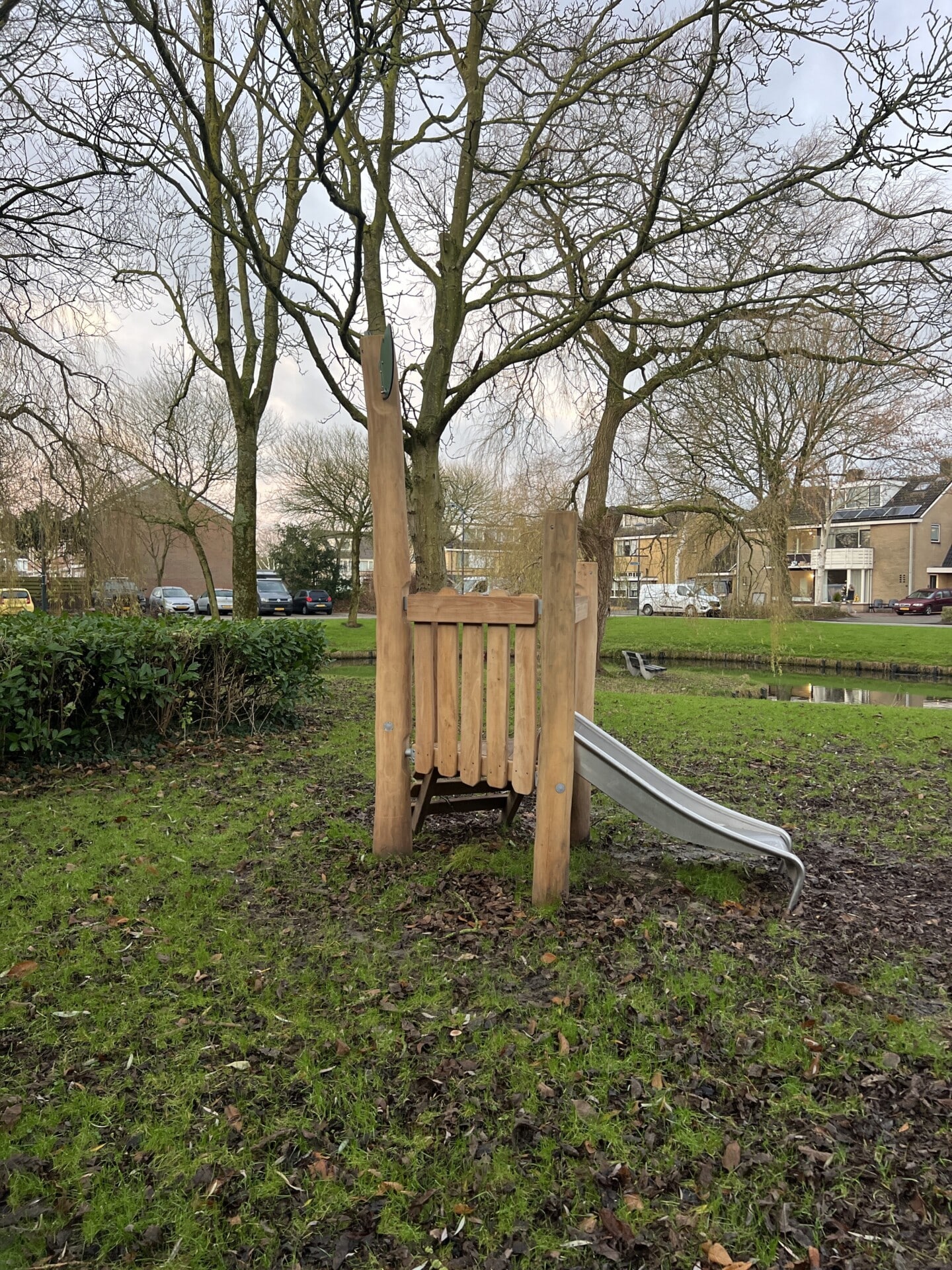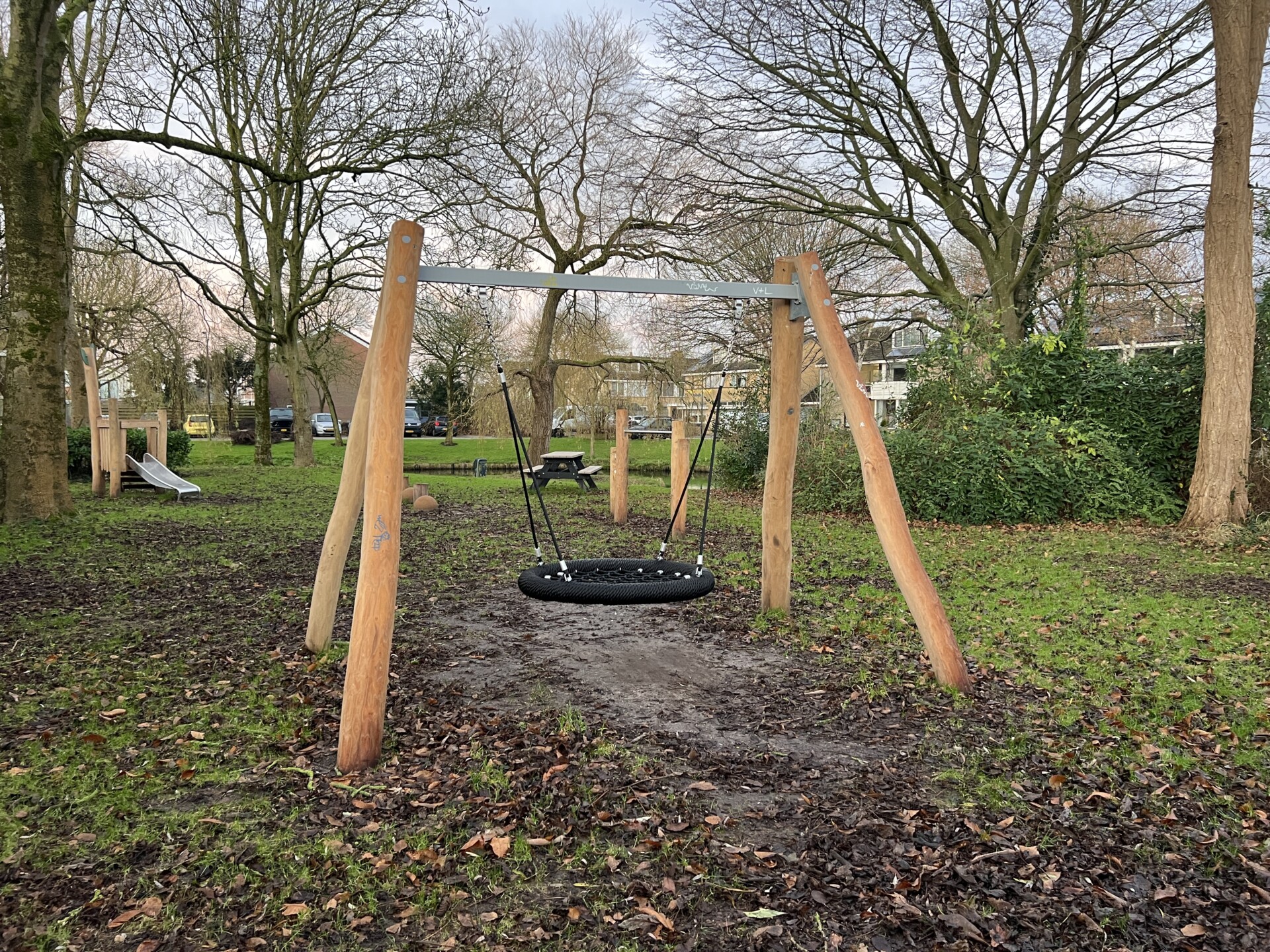 Voor Gemeente Hoorn maken we middels het raamcontract regelmatig leuke nieuwe speelplekken.  Ook het Vierkant in Zwaag mochten we doen.  Gekozen is voor een natuurlijke uitstraling in dit boomrijke parkje.  Voor de kleinsten een leuke glij en klimcombinatie – RB1306 en de Veerwipstam RB1361.  Voor de oudere jeugd een vogelnestschommel – RB1423, een drievoudig duikelrek – RB1265 en Stappalen combi RB1251 met Jollebollen JB350.  Tevens is er een vaste Picknick tafel neergezet.