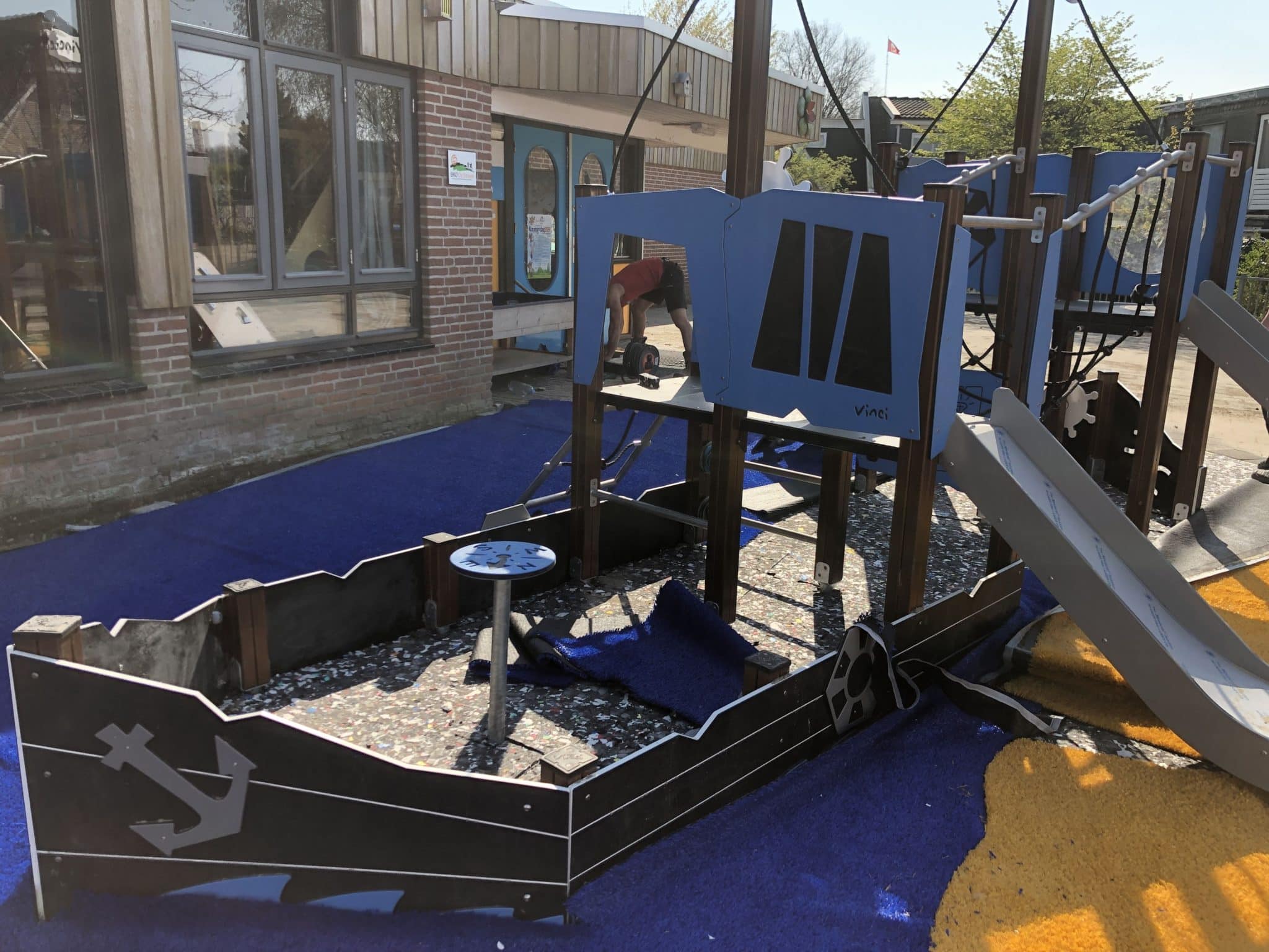 Bij RKBS de Baskuul in Lutjebroek is onlangs het fraaie speelschip WD1415 geplaatst. Een fiks aantal vrijwilligers van de school heeft in goede samenwerking met Hercules Speeltoestellen het piratenschip ter plekke afgebouwd en speelklaar voor de kinderen gemaakt. Als valdemping is gekozen voor valdempend kunstgras waardoor zowel de zee als het strand konden worden aangelegd. Binnenzijde van de speelboot is voorzien van roodbruin valdempend kunstgras. Inmiddels hebben de jonge piraatjes uit de onderbouw het toestel in hun bezit genomen. Met diverse klimhellingen, speelaanleidingen en 2 glijbanen biedt het de kinderen een fijne speelplek. Ook is op het schoolplein een eigen ontwerp Verkeersplein aangebracht, een schaduwdoek boven de zandbak en een heuse weegschaal (baskuul) in de zandbak zorg voor veel speelplezier.