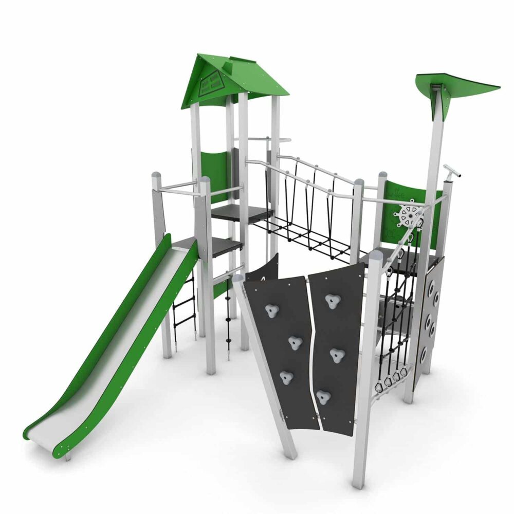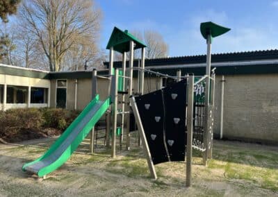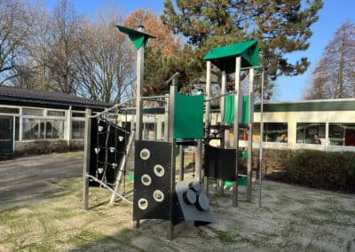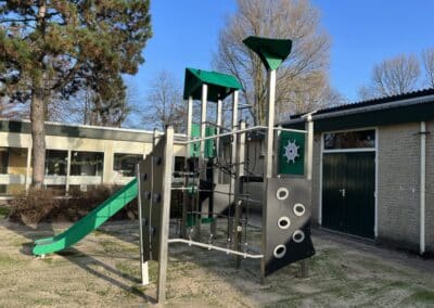 De kinderen op De Alk beginnen het nieuwe jaaar goed!  Een prachtig nieuwe speeltoestellen uit de Steel+ serie van VinciPlay staat voor hen klaar als ze na de kerstvakantie weer op school komen.  Al het metaal aan Speelcombinatie ST1708  is RVS geombineerd met stevige HDPE plaatgmateriaal.  Het toestel is met Stadswerk72 van Gemeente Alkmaar door Hercules Speeltoestellen en KSP kunstgras geplaatst.  De al aanwezige dubbeschommel is tevens voorzien van een nieuwe laag kunstgras