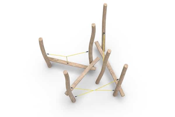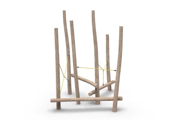 Balanceercombinatie met horizontale en verticale stammen en staal versterkte kabels.