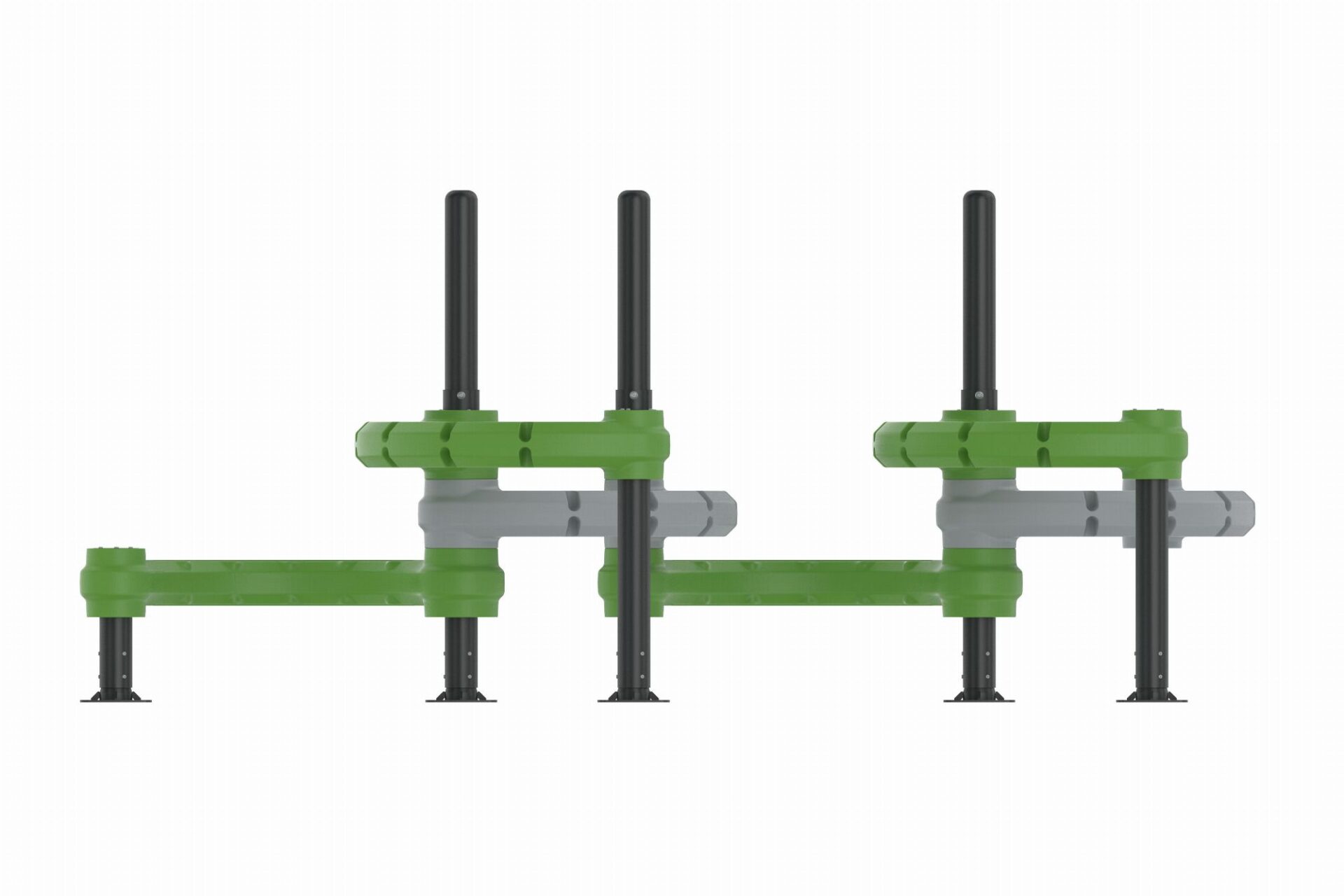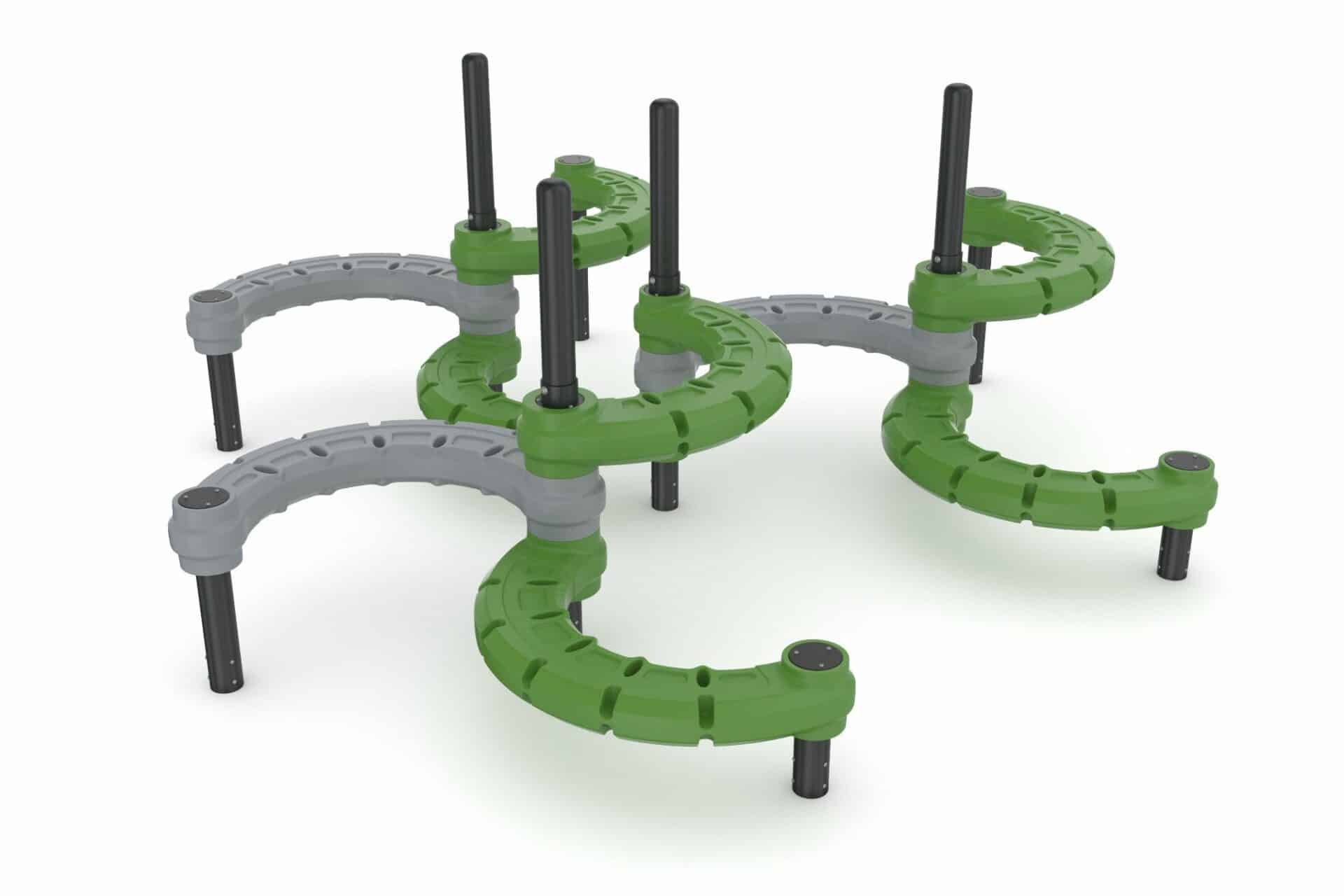 De Arc Serie is een modulaire klimunit die speciaal is ontworpen om het evenwichtsgevoel van kinderen te verbeteren. Het polyethyleen element maakt het mogelijk om doolhofachtige varianten te creëren door de gebogen blokken aan begin- en eindpunten met horizontale buizen te verbinden. De veerelementen zorgen voor een uitdagende klimervaring, waarbij kinderen hun grove motoriek verder ontwikkelen. De kleuren zijn op verzoek aanpasbaar.