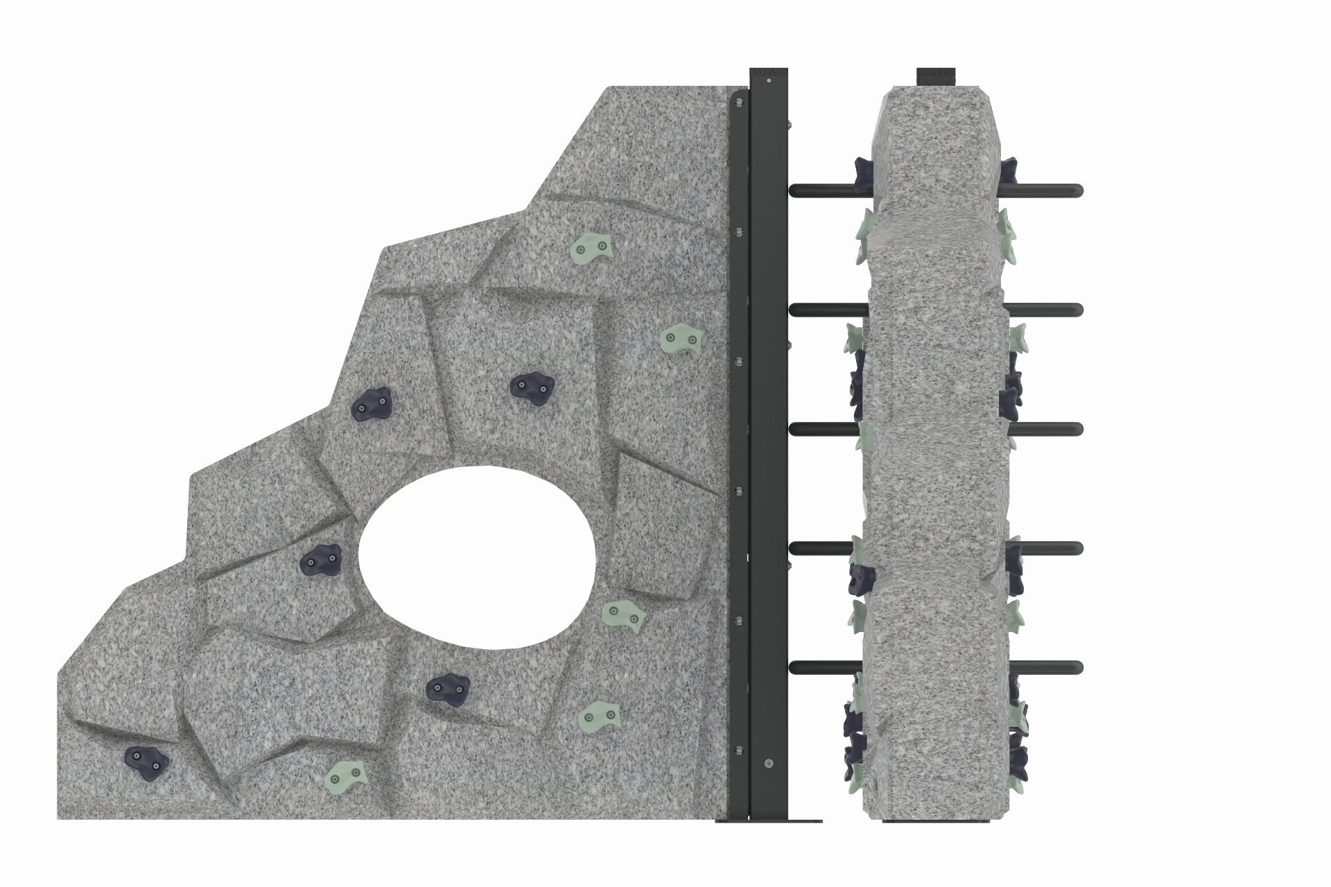 Deze Boulderwand is een natuurlijk ogend accessoire, geïnspireerd op rotsformaties. Dankzij de ingesneden zigzagvorm en grepen voor hand- en voetsteun biedt het kinderen een dynamische klimervaring. De klimwand kan eenvoudig gecombineerd worden met glijbanen en touwen, waardoor er verschillende spelvarianten ontstaan.