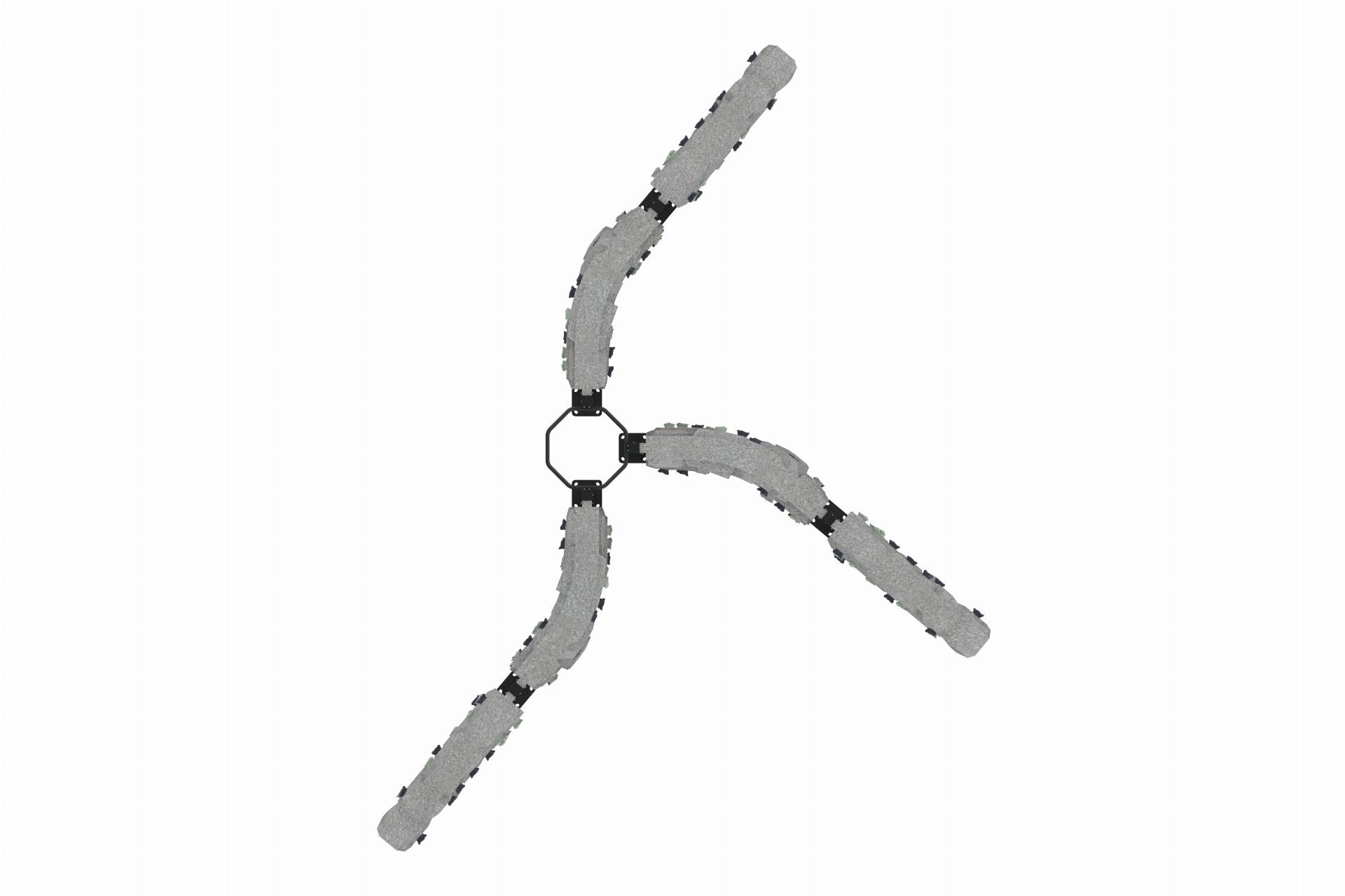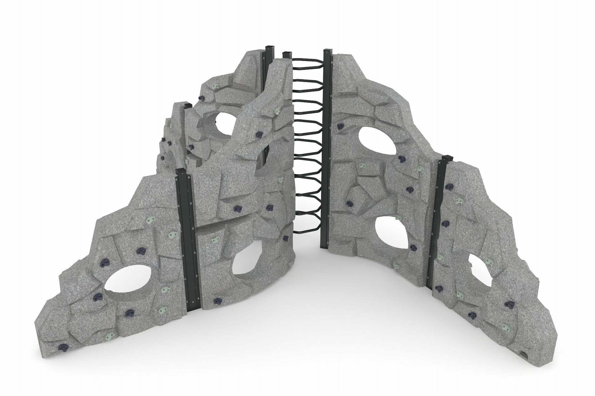 Deze Boulderwand is een natuurlijk ogend accessoire, geïnspireerd op rotsformaties. Dankzij de ingesneden zigzagvorm en grepen voor hand- en voetsteun biedt het kinderen een dynamische klimervaring. De klimwand kan eenvoudig gecombineerd worden met glijbanen en touwen, waardoor er verschillende spelvarianten ontstaan.