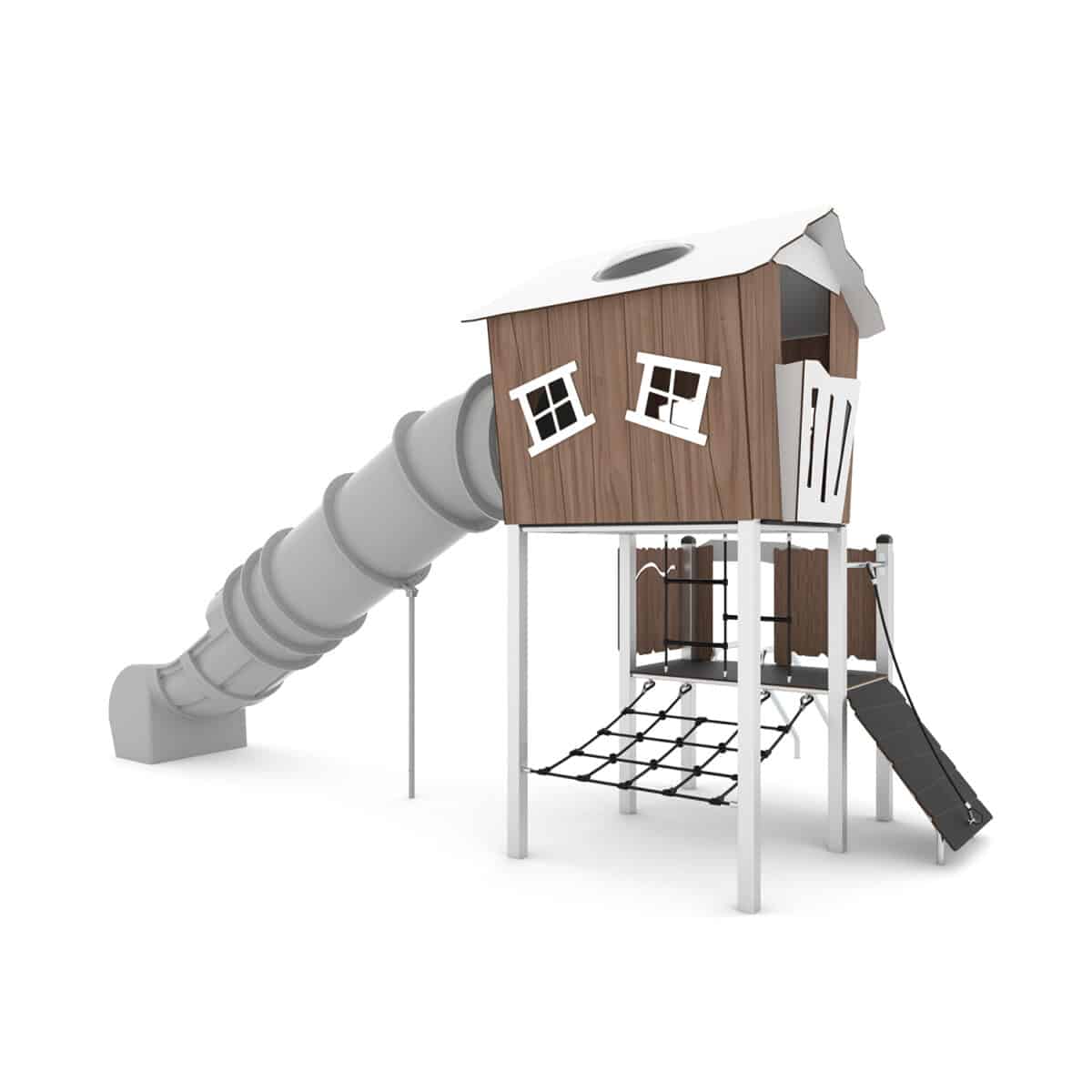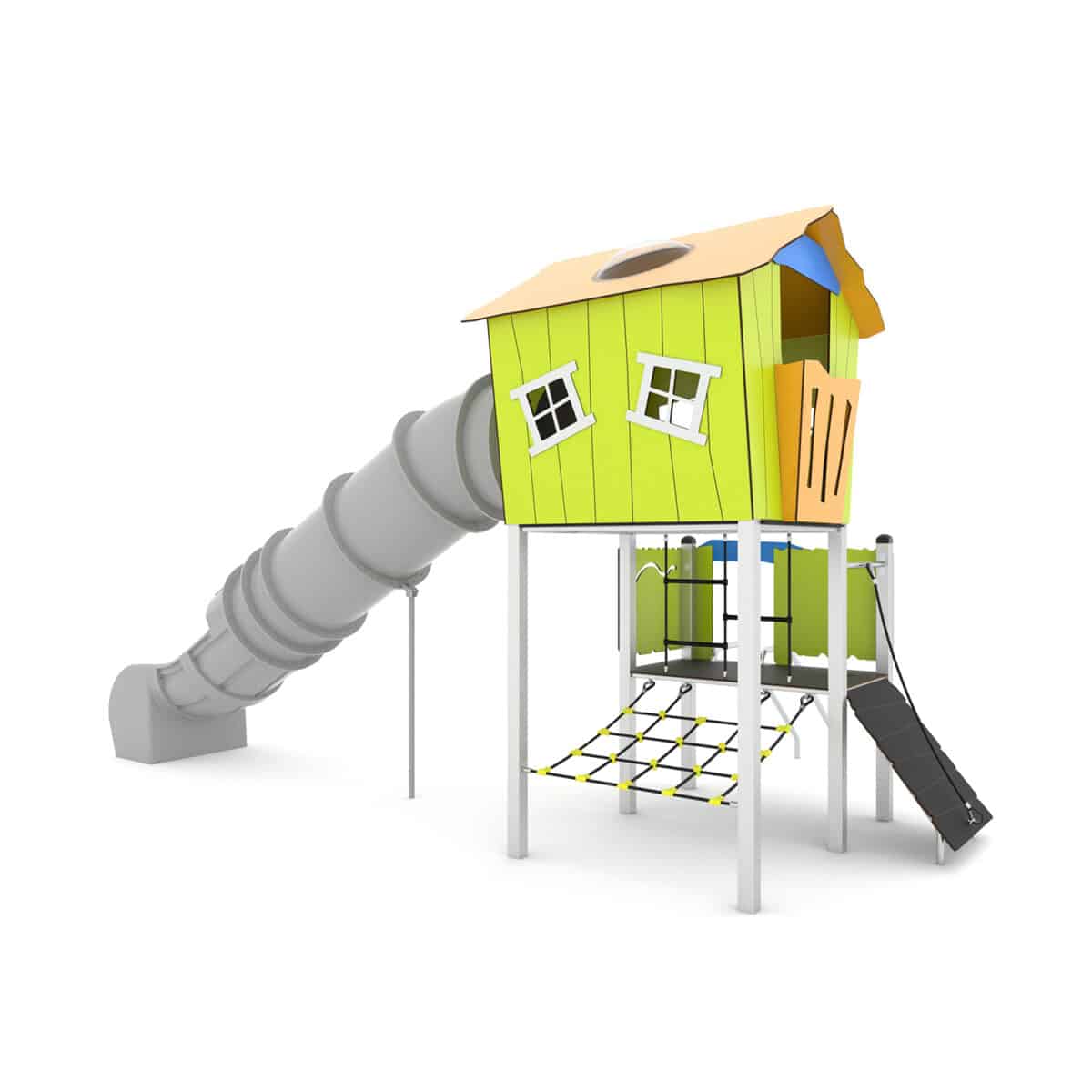 Speelcombinatie met PE buisglijbaan, klimelementen en glijstangen