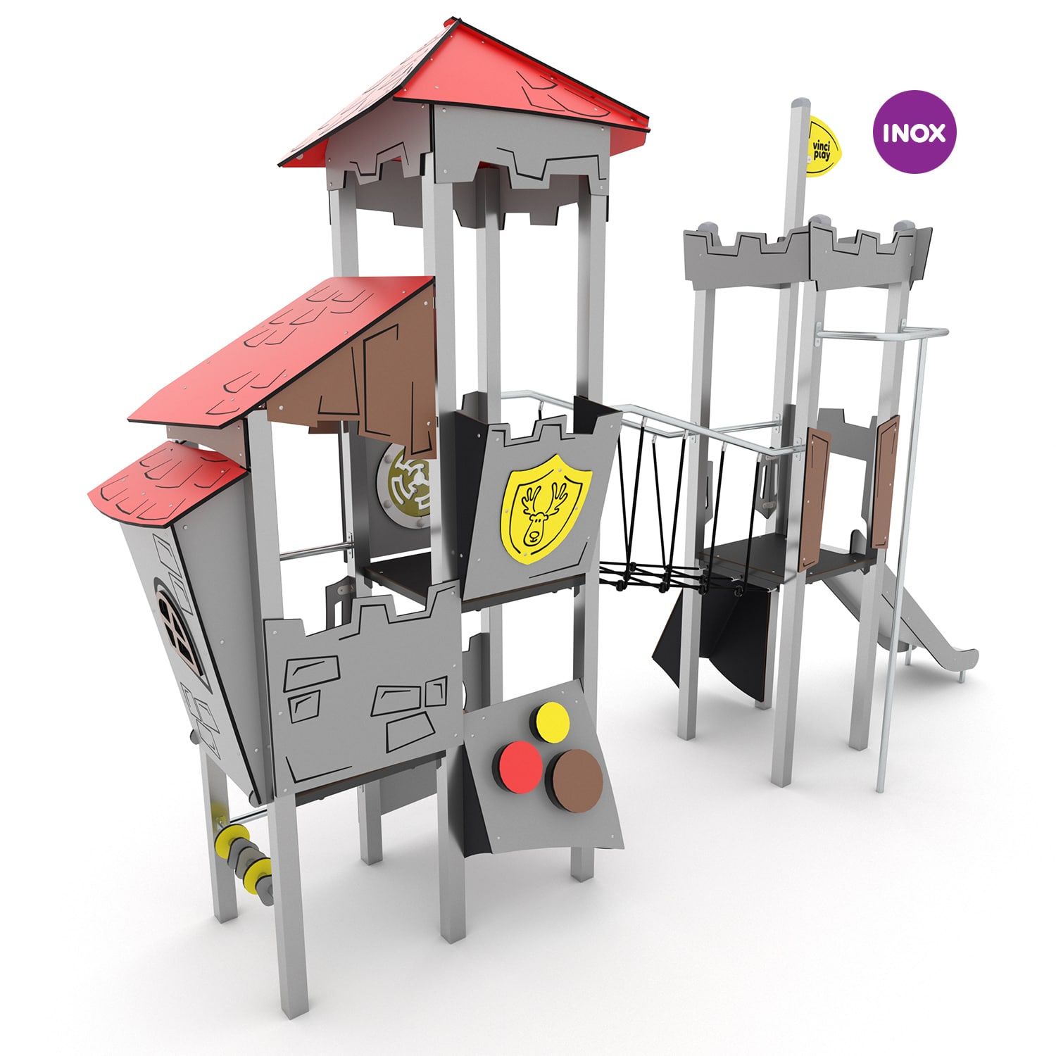 De Castillo-serie bestaat uit een indrukwekkende serie speelcombinaties in Kasteelthema. Door de sprookjesachtig vormgegeven speeltoestellen kan rollenspel tot ware kunst verheven worden. Daarnaast raak je niet uitgespeeld door de vele manipulatieve elementen die in de producten verwerkt zijn. Binnen de serie is er niet bespaard op kwaliteit. Hoogwaardige RVS staanders vormen de stabiele basis, plaatwerk is vervaardigd uit hoogwaardig HDPE en HPL kunststof en bruggen en klimnetten zijn van staalversterkt touwwerk.