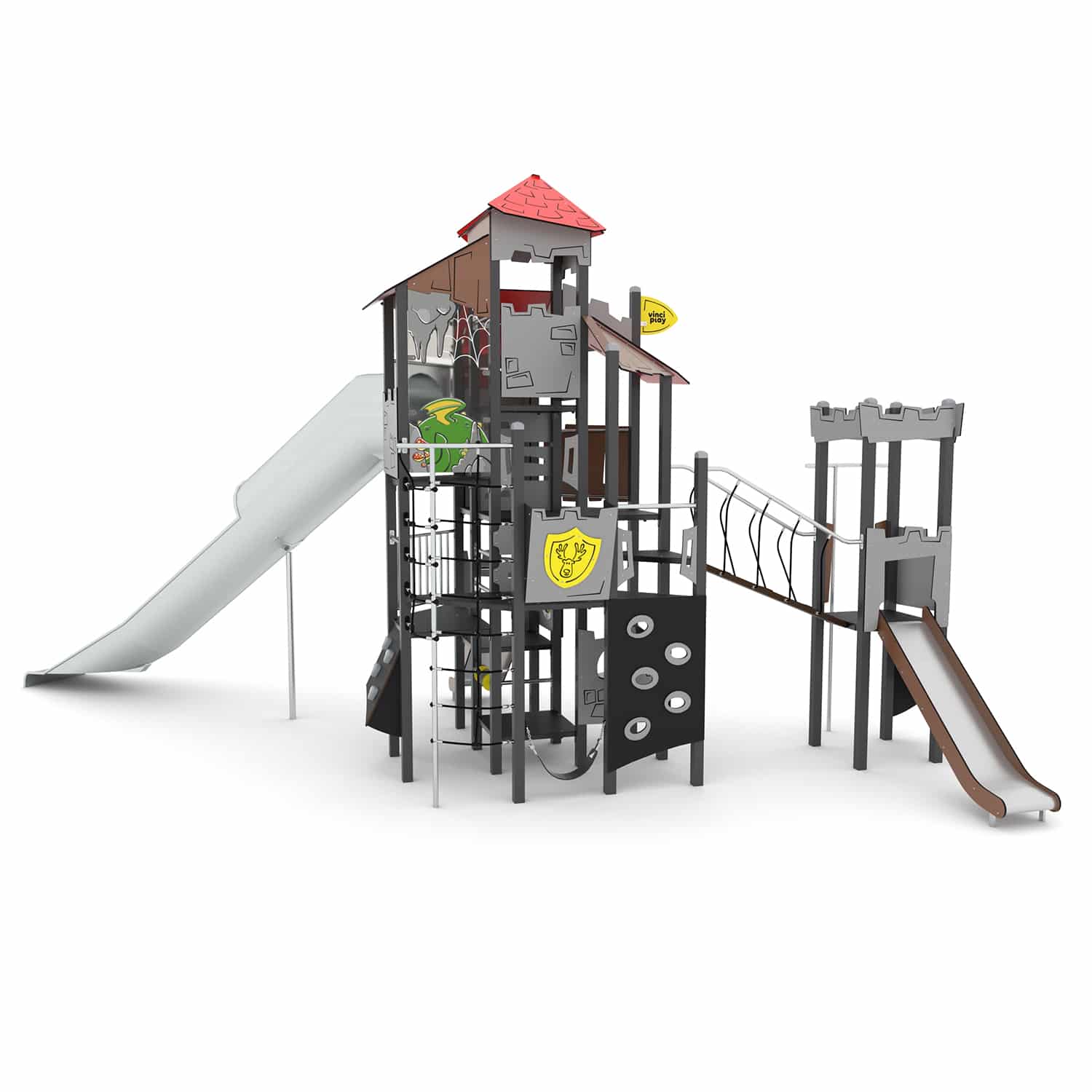 De Castillo-serie bestaat uit een indrukwekkende serie speelcombinaties in Kasteelthema. Door de sprookjesachtig vormgegeven speeltoestellen kan rollenspel tot ware kunst verheven worden. Daarnaast raak je niet uitgespeeld door de vele manipulatieve elementen die in de producten verwerkt zijn. Binnen de serie is er niet bespaard op kwaliteit. Hoogwaardige RVS staanders vormen de stabiele basis, plaatwerk is vervaardigd uit hoogwaardig HDPE en HPL kunststof en bruggen en klimnetten zijn van staalversterkt touwwerk. Met torens tot wel 9.00 meter hoog kan er op verschillende niveaus worden gespeeld en zijn de RVS buisglijbanen een regelrechte hit!