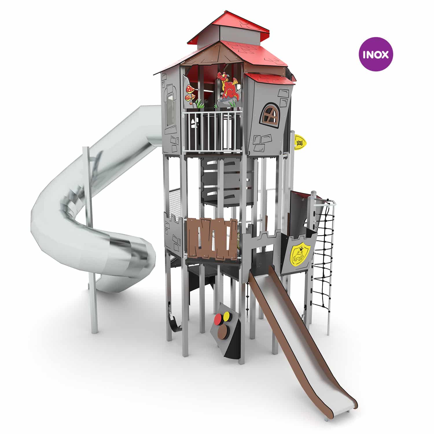 De Castillo-serie bestaat uit een indrukwekkende serie speelcombinaties in Kasteelthema. Door de sprookjesachtig vormgegeven speeltoestellen kan rollenspel tot ware kunst verheven worden. Daarnaast raak je niet uitgespeeld door de vele manipulatieve elementen die in de producten verwerkt zijn. Binnen de serie is er niet bespaard op kwaliteit. Hoogwaardige RVS staanders vormen de stabiele basis, plaatwerk is vervaardigd uit hoogwaardig HDPE en HPL kunststof en bruggen en klimnetten zijn van staalversterkt touwwerk. Met torens tot wel 9.00 meter hoog kan er op verschillende niveaus worden gespeeld en zijn de RVS buisglijbanen een regelrechte hit!