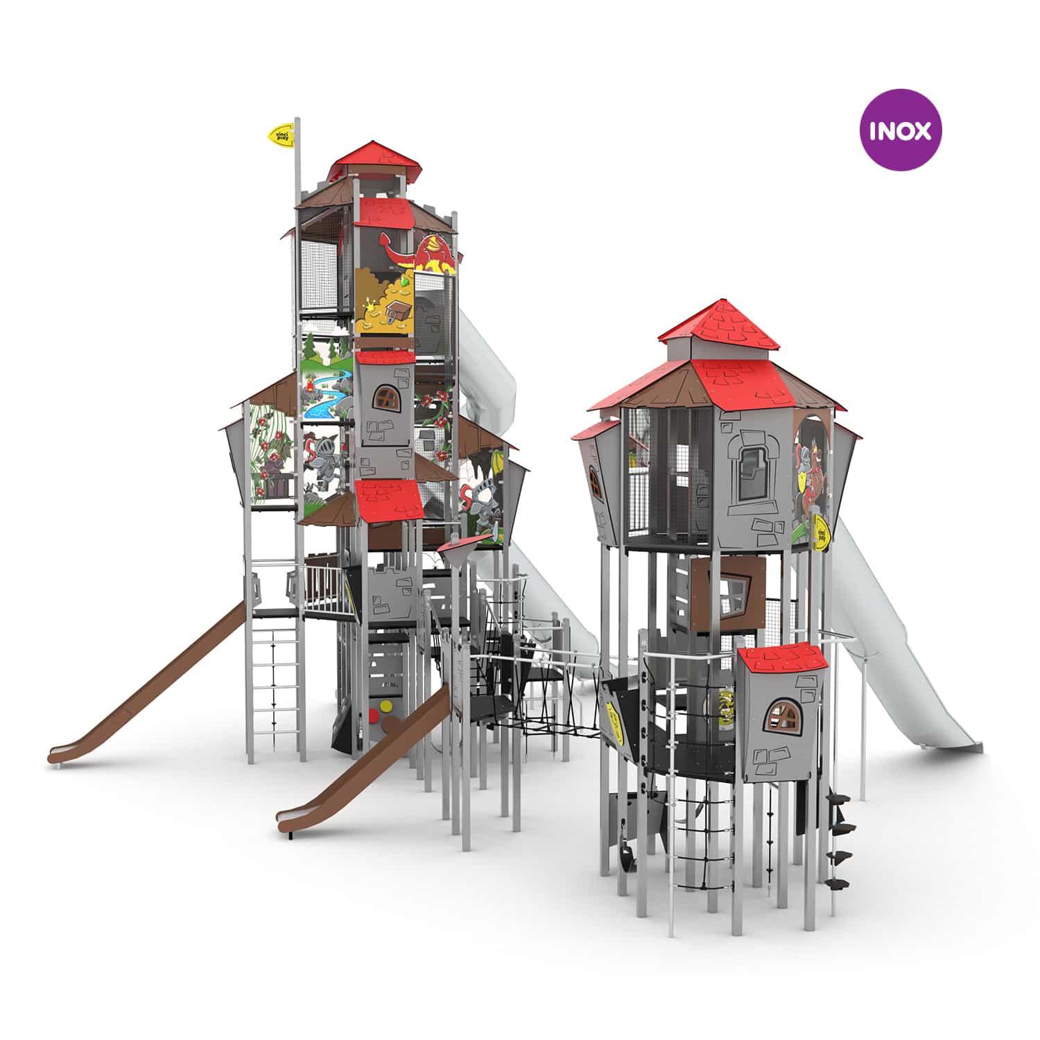 De Castillo-serie bestaat uit een indrukwekkende serie speelcombinaties in Kasteelthema. Door de sprookjesachtig vormgegeven speeltoestellen kan rollenspel tot ware kunst verheven worden. Daarnaast raak je niet uitgespeeld door de vele manipulatieve elementen die in de producten verwerkt zijn. Binnen de serie is er niet bespaard op kwaliteit. Hoogwaardige RVS staanders vormen de stabiele basis, plaatwerk is vervaardigd uit hoogwaardig HDPE en HPL kunststof en bruggen en klimnetten zijn van staalversterkt touwwerk. Met torens tot wel 9.00 meter hoog kan er op verschillende niveaus worden gespeeld en zijn de RVS buisglijbanen een regelrechte hit!