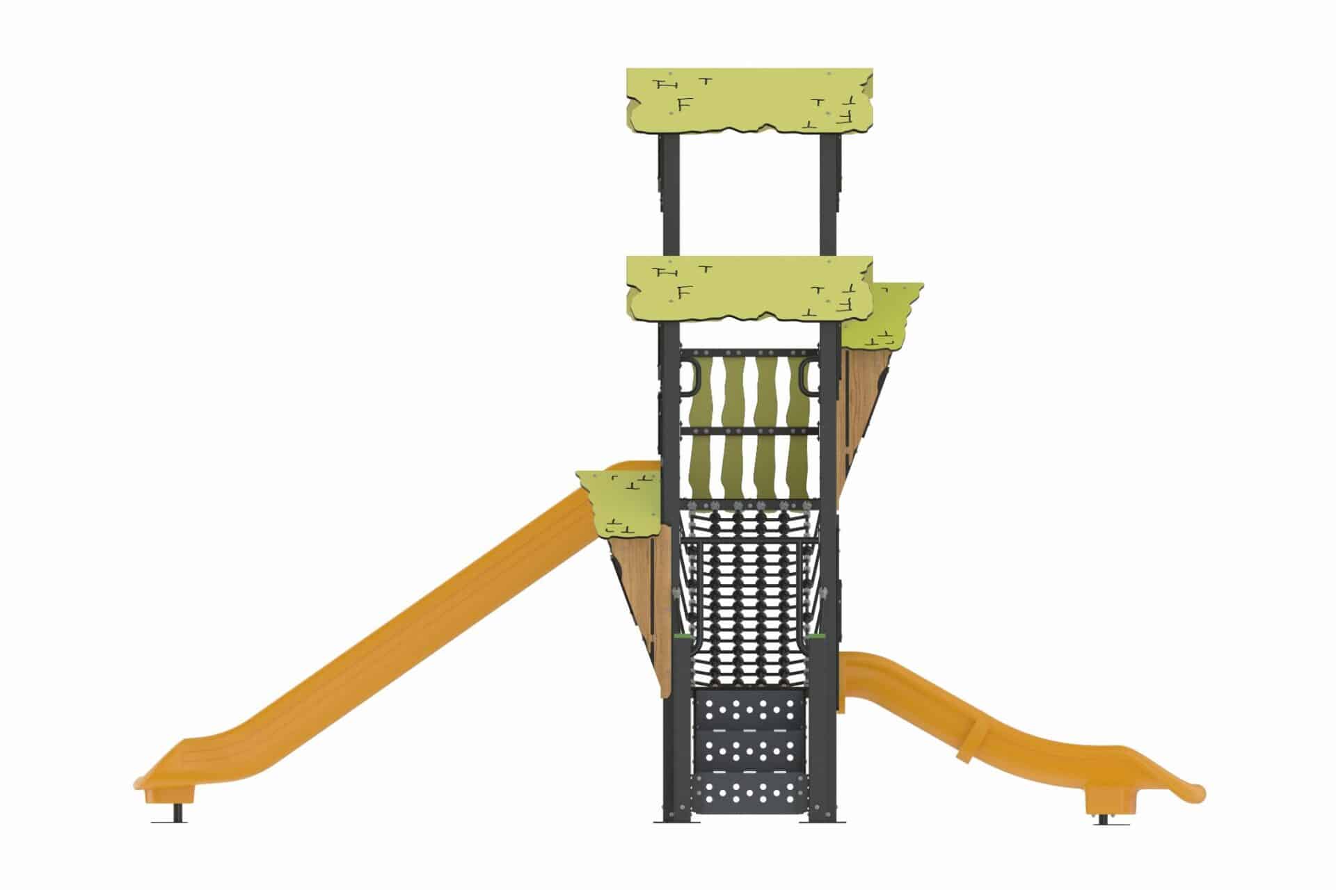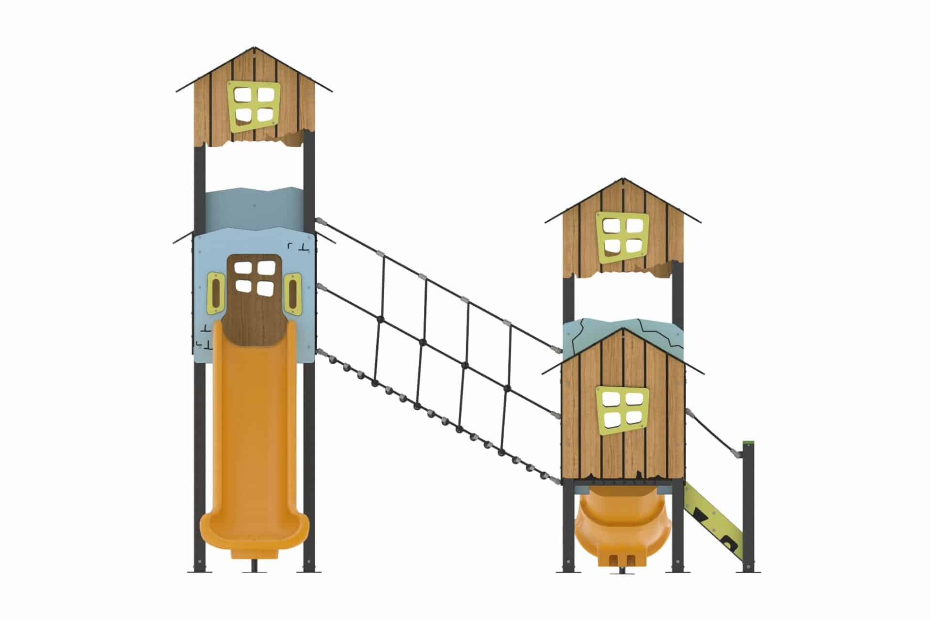 De Tetto-serie kenmerkt zich door speelcombinaties met een open structuur die wel aansluiten bij speelwensen en kleurcombinaties van vandaag de dag. Glijbanen met rvs glijvlak zijn optioneel beschikbaar voor dit artikel.