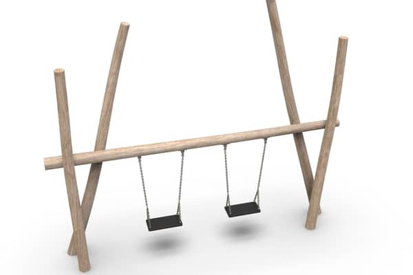 Dubbele lage schommel met hoge staanders.