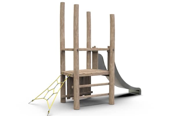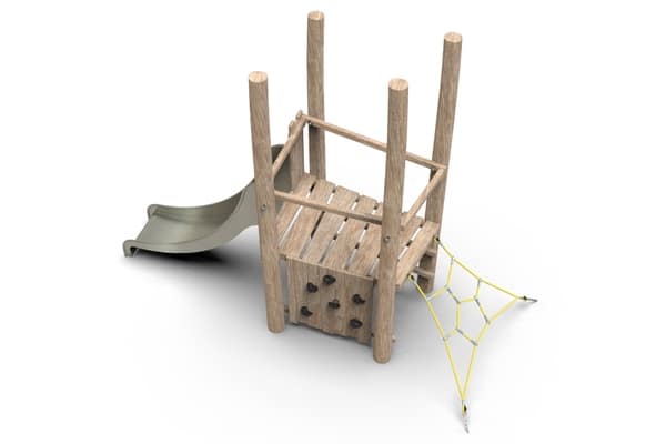 Glijtoren van 0,95 meter hoog met klimnet en klimwand.
