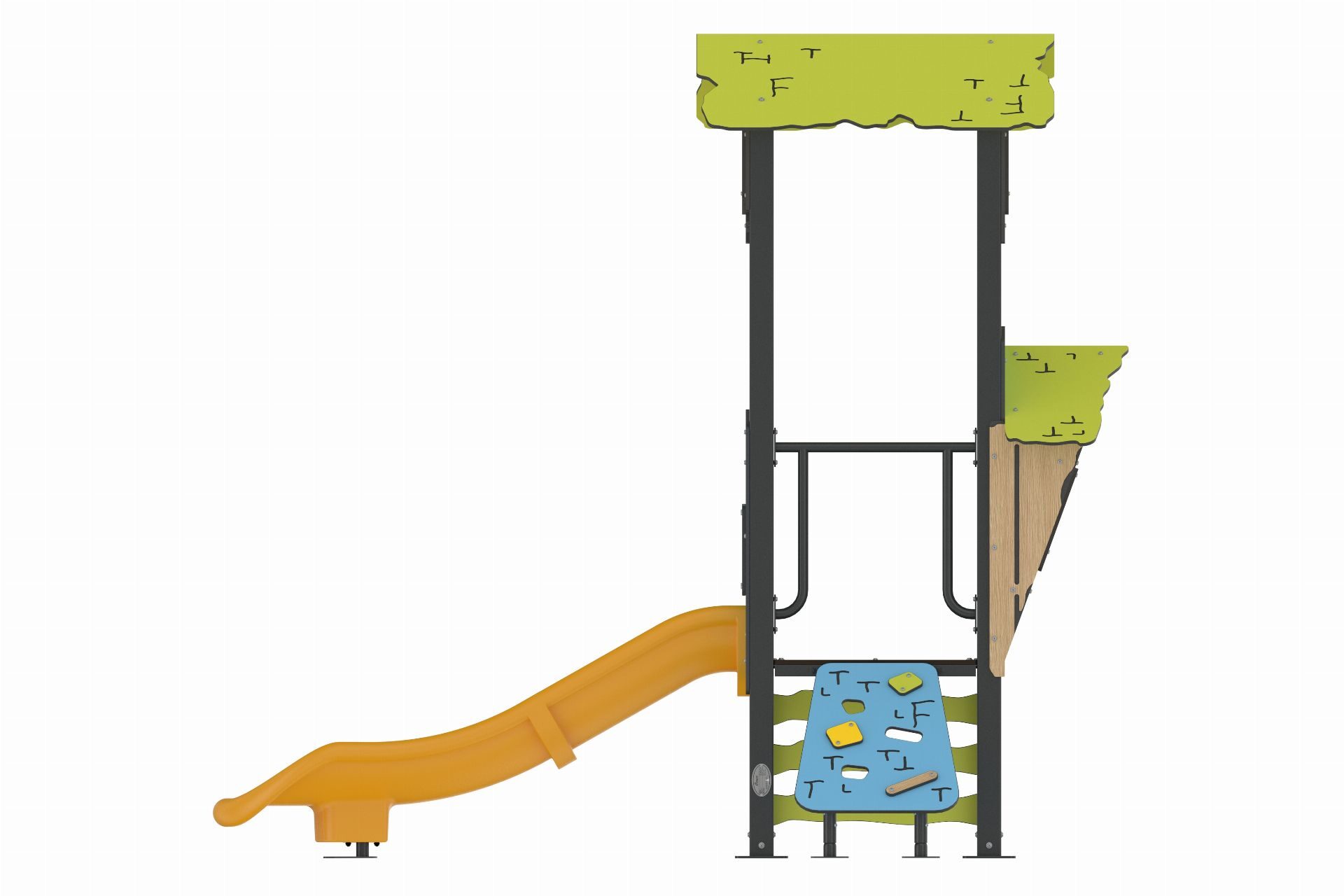 De Tetto-serie kenmerkt zich door speelcombinaties met een open structuur die wel aansluiten bij speelwensen en kleurcombinaties van vandaag de dag. Glijbanen met rvs glijvlak zijn optioneel beschikbaar voor dit artikel.