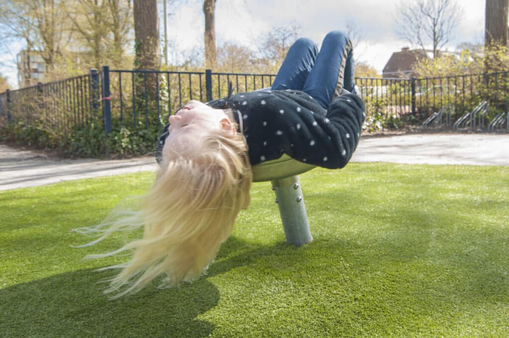 Lekker rond tollen op deze holle spinner van volledig RVS om vandalisme tot een minimum te beperken.