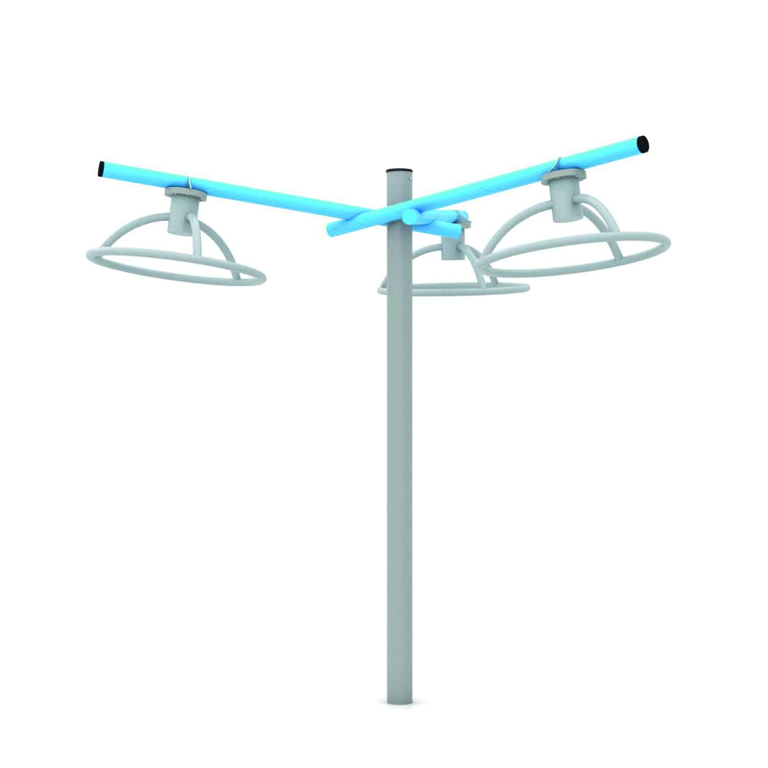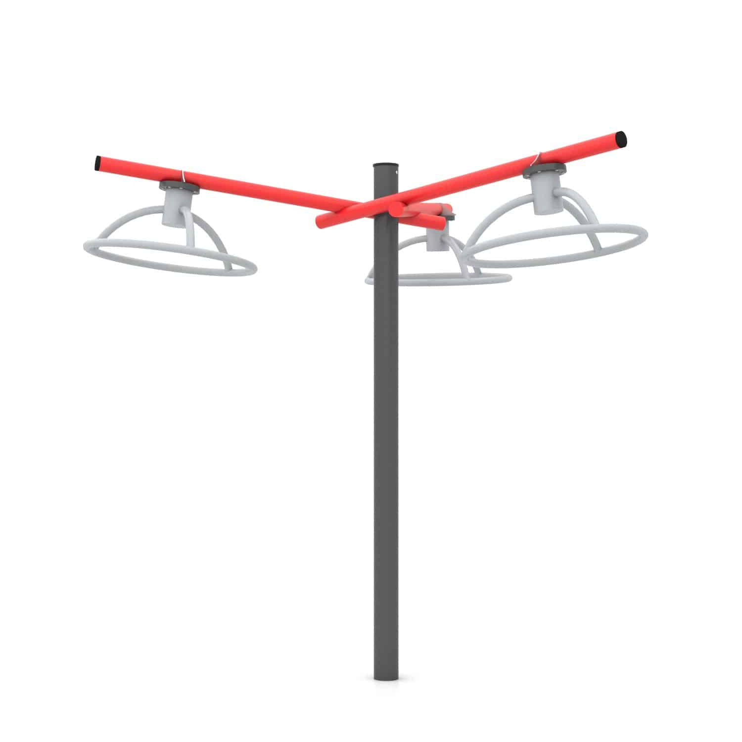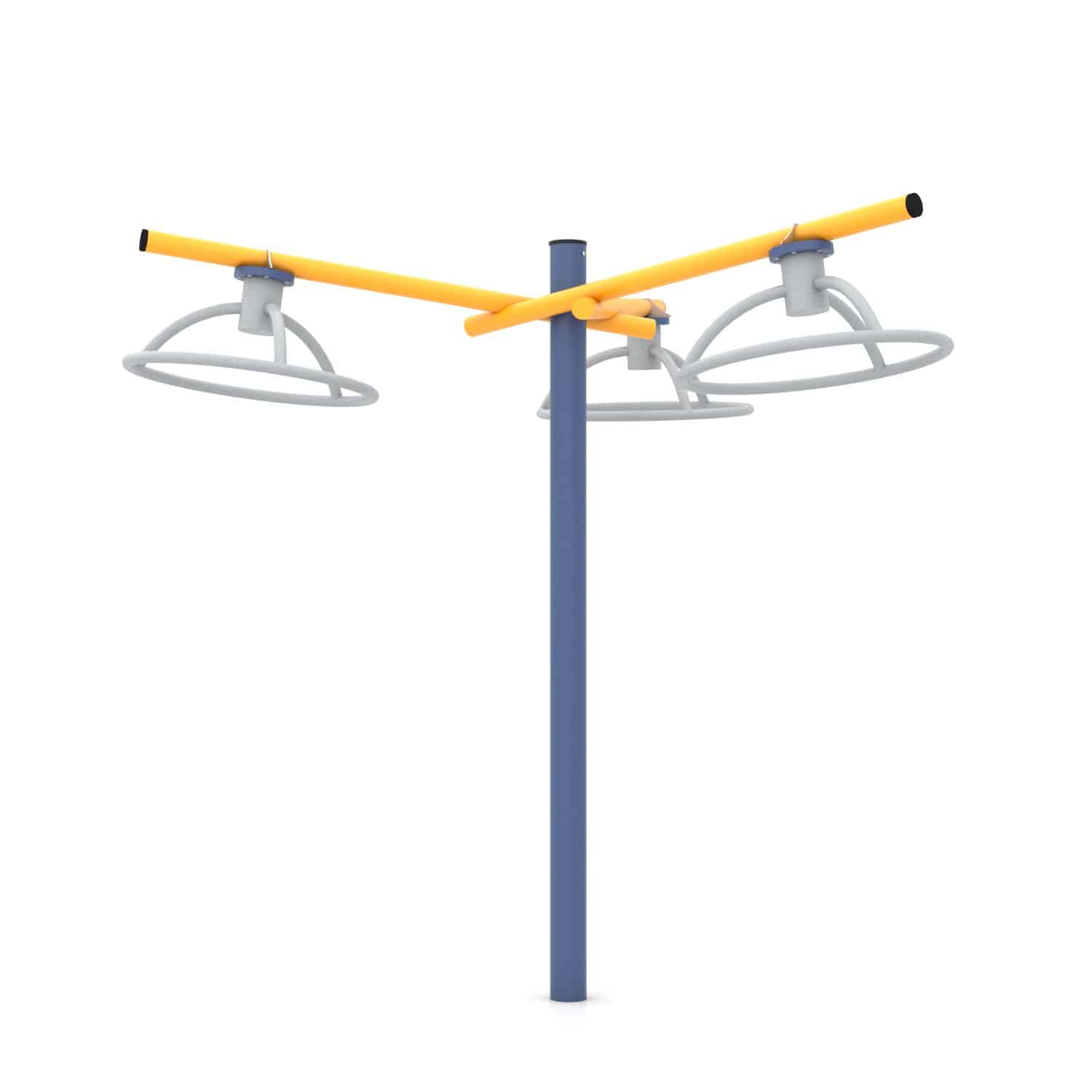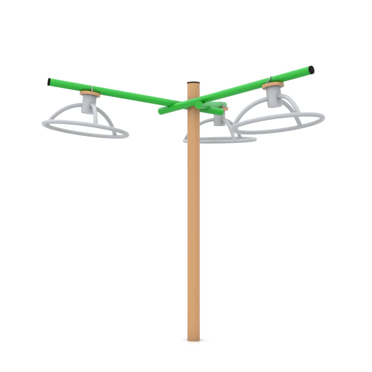 Klimmen en draaien kan in deze uitdagende carrousel die ook door de oudere jeugd enorm gewaardeerd wordt. De draaimolen is vervaardigd uit staalversterkte kabels een hpl platform en een metalen frame.