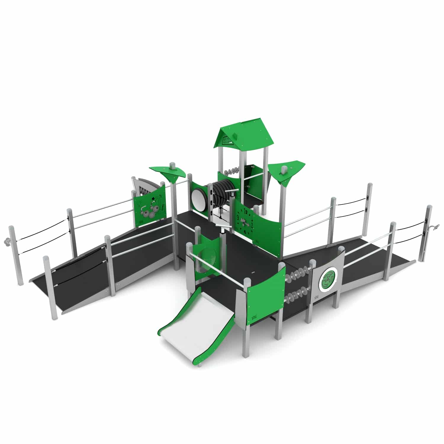 De STEEL+ serie biedt heel veel speelwaarde voor kinderen van alle leeftijden. Steel+ heeft een zeer fraai en onderscheidend design en is gemaakt van top kwaliteit materialen. Door toevoeging van verschillende manipulatieve elementen raak je nooit uitgespeeld, ook niet als je minder gemakkelijk ter been bent. Door de deze hellingbaan kan iedereen onderdeel uitmaken van het spel, heel inclusief!