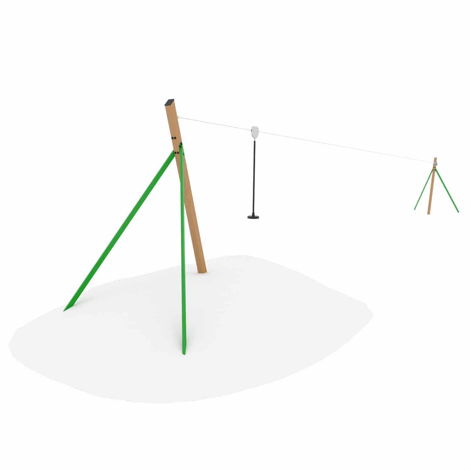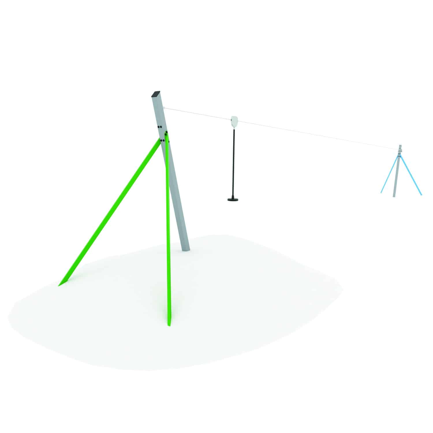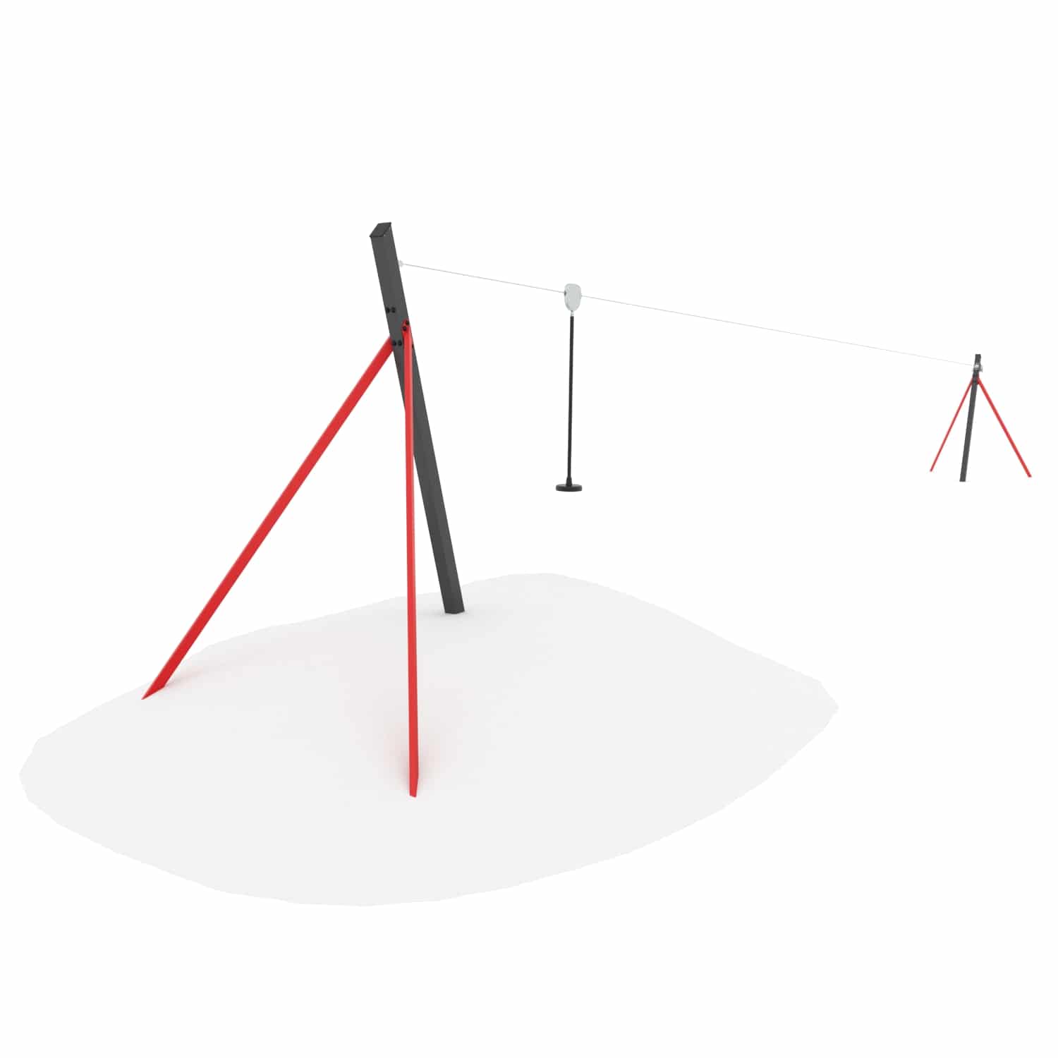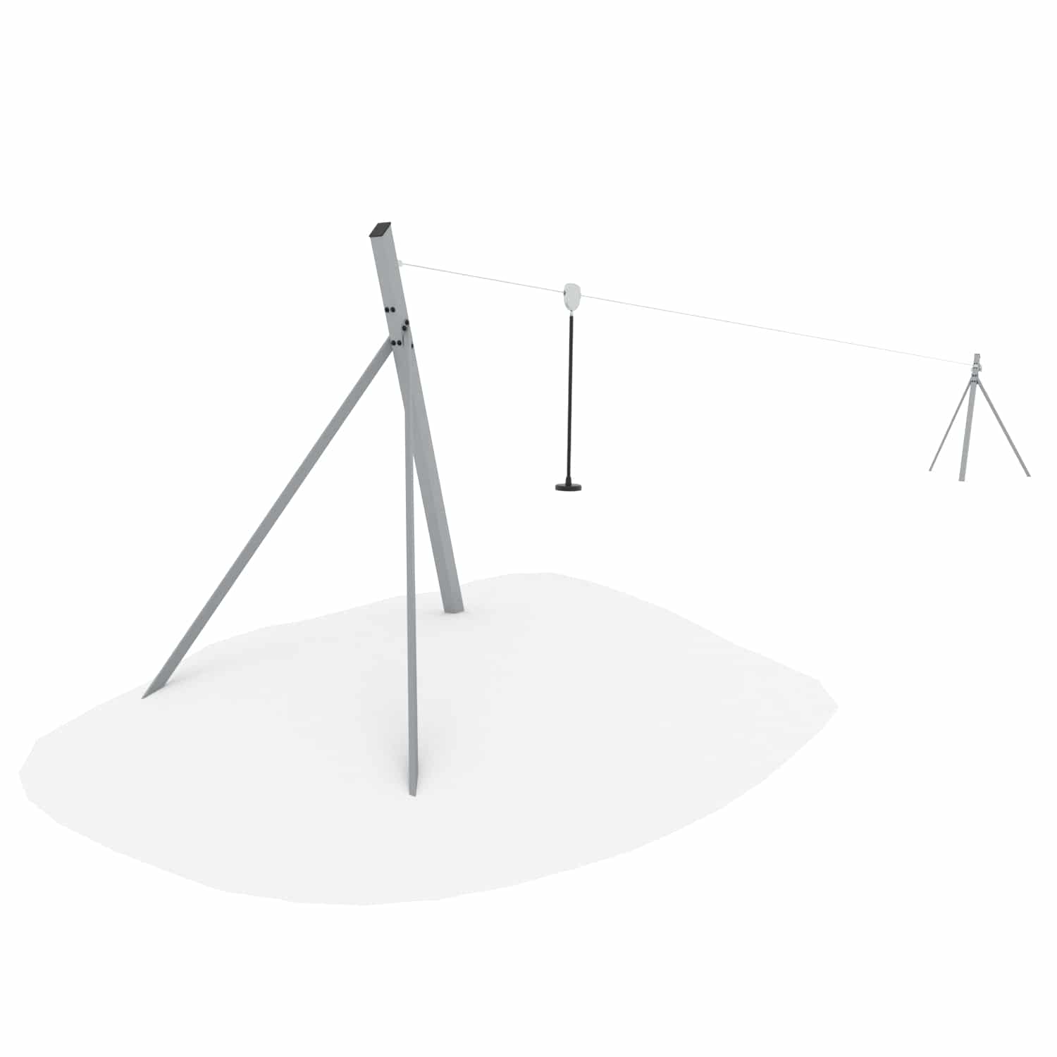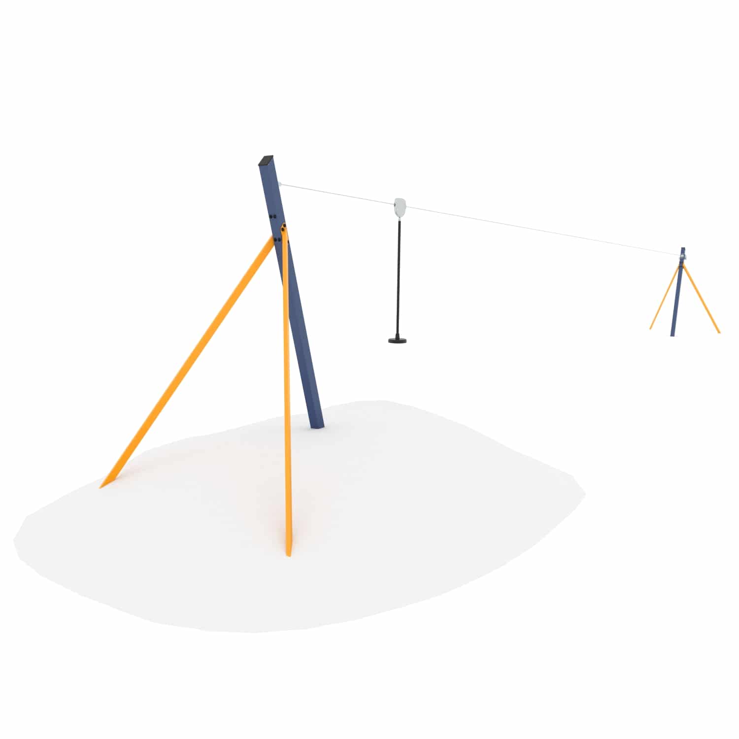 Enkele kabelbaan om naar de andere kant te zoeven. Een talud is nodig als startplatform. Deze kabelbaan is in diverse lengtes leverbaar, vraag ons naar de mogelijkheden.