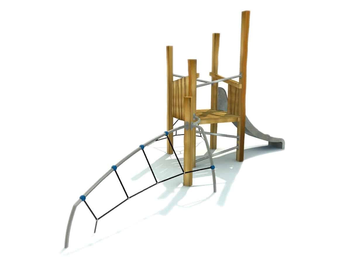 De Rob Roy-serie combineert geschaafd robiniahout met gegalvaniseerd staal voor maximale duurzaamheid en een tijdloze, natuurlijke look. De toestellen zijn ontworpen voor intensief, openbaar gebruik en vragen weinig onderhoud. Met de vele configuraties en uitbreidingen realiseer je voor elke locatie een onderscheidende speelplek met hoge speelwaarde.