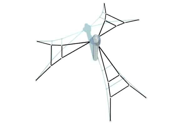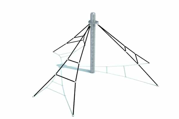 Horzizontaal en uitdagend klimelement met geometrische netstructuren. Door de beperkte valhoogte is plaatsing op een natuurlijke bodem mogelijk. Hoogwaardige kabels zijn met gegalvaniseerde staanders gecombineerd.