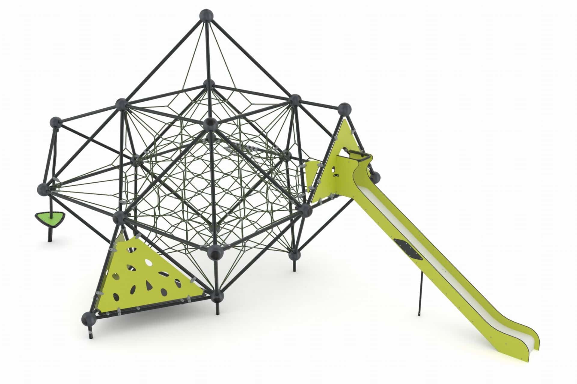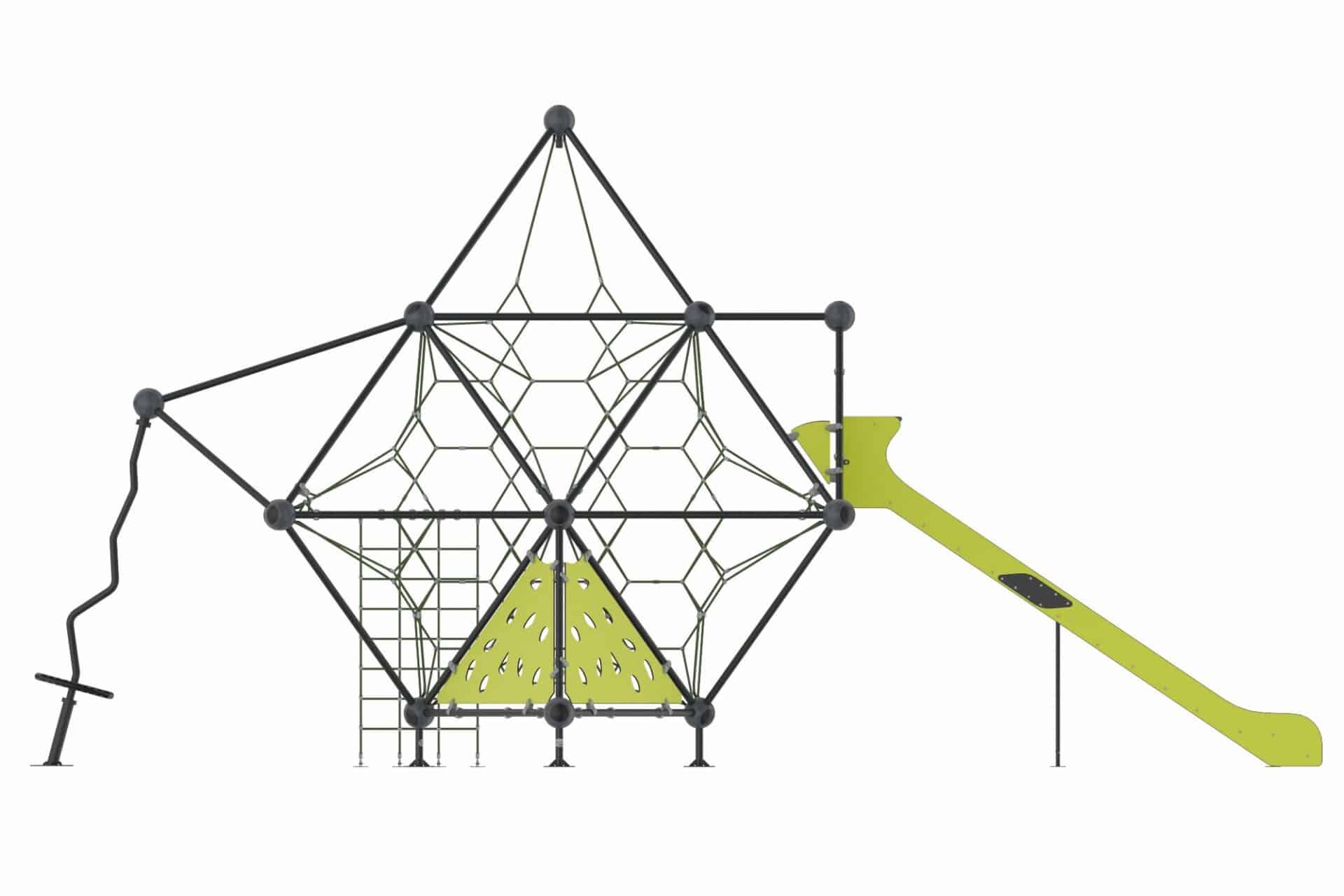 Binnen de 3D-netstructuren wordt staalversterkt Hercules touw verwerkt dat in verschillende kleuren leverbaar is. Maatwerk is mogelijk. Het biedt kinderen de uitdagende spanning van het beklimmen van touwen vanaf de basis tot de top, waarbij fysieke activiteit en spel op een dynamische manier samenkomen.