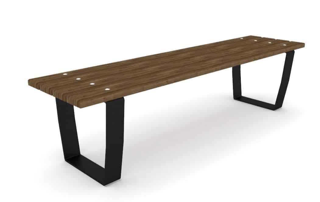 Deze duurzame parkbank zonder rugleuning is vervaardigd uit een metalen frame met houten zitting.