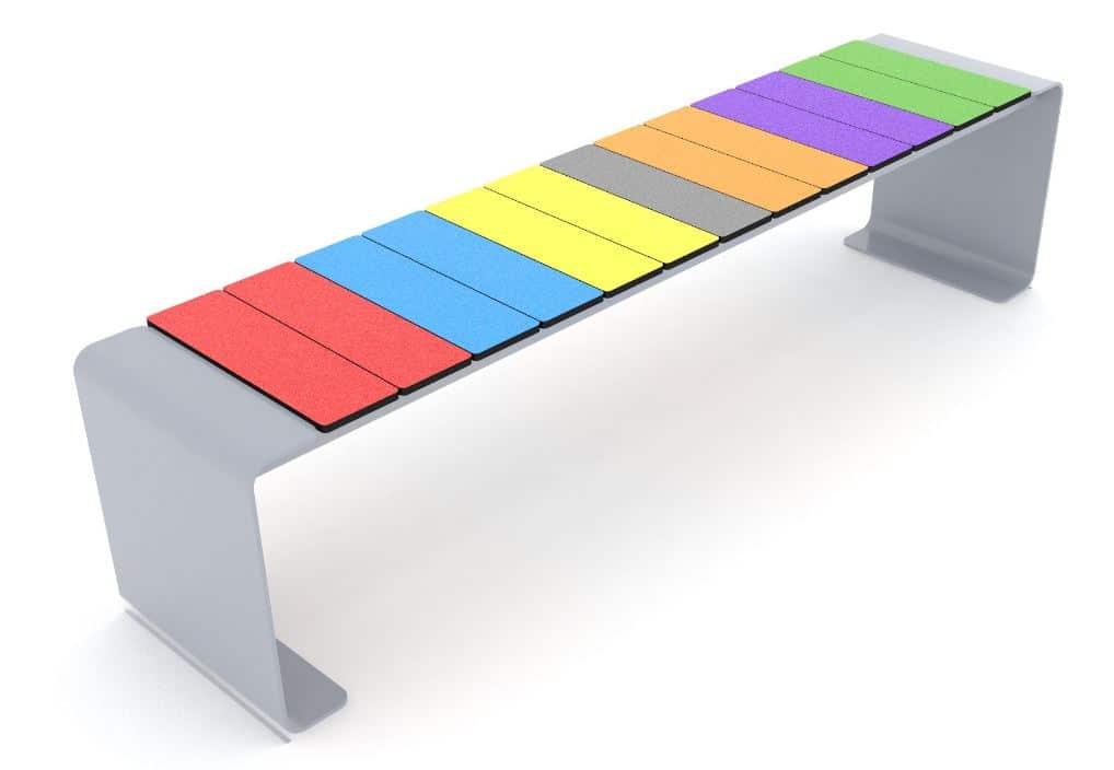 Deze regenboogbank ‘Pride’ zonder rugleuning, vervaardigd uit HPL panelen en een metalen frame, is onderhoudsarm en laat je genieten van je vrijheid.