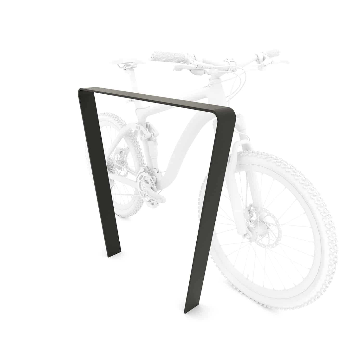 Strak vormgegeven fietsleunhek vervaardigd uit gegalvaniseerd en gepoedercoat staal.
