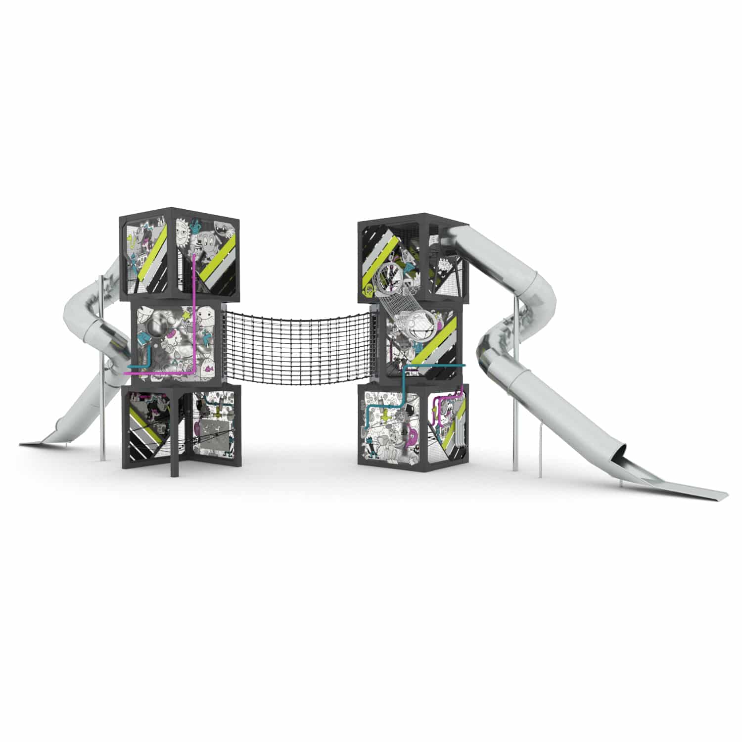 De QUBIX-serie zijn geometrische constructies gevuld met activiteit elementen. Hun moderne ontwerp past perfect in stedelijke ruimtes en biedt kinderen en tieners een geweldige plek om hun motorische coördinatie te ontwikkelen. Interessante grafisch en symmetrische vormen van staalconstructies zullen kinderen en verzorgers in verrukking brengen.