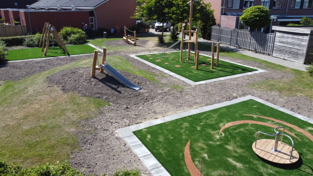 Rustieke Robinia producten geven een avontuurlijk karakter aan een speelplek. Het kan de natuurlijke uitstraling van een groene speelplek bevorderen of een mooi contrasteren met een meer moderne strakke uitstraling van de omgeving.