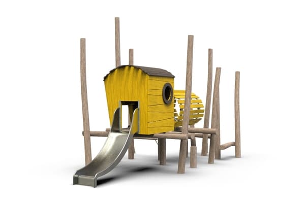Rustieke Robinia producten geven een avontuurlijk karakter aan een speelplek. Het kan de natuurlijke uitstraling van een groene speelplek bevorderen of een mooi contrasteren met een meer moderne strakke uitstraling van de omgeving.