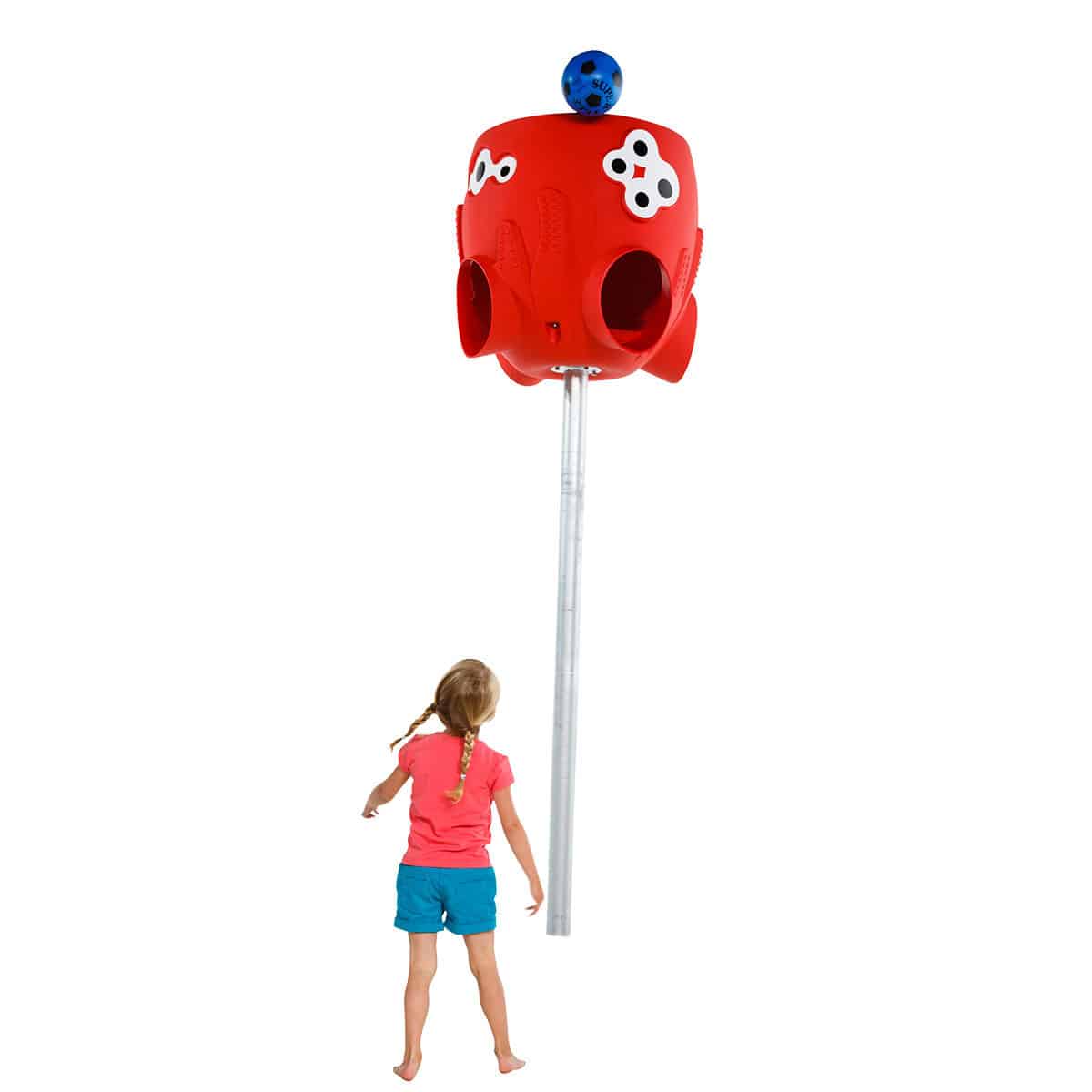 Gooi de bal in de korf en rara waar komt ie uit? Deze Inkvis Ballenvanger heeft 4 uitgangen voor de bal. Hoeveel punten heb je gescoord?