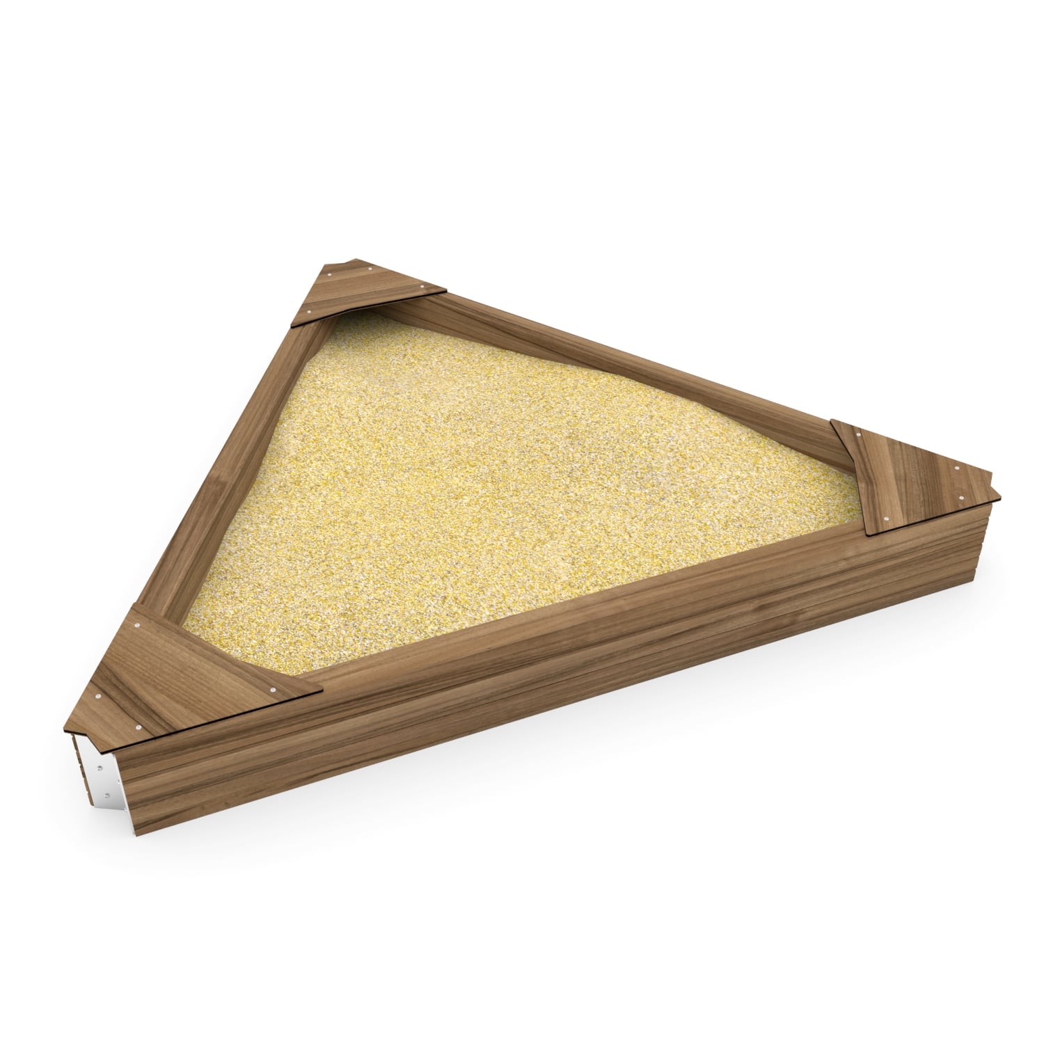 Deze zandbak kan eenvoudig op bestaande bestrating worden aangebracht of kan er – voor een diepere zandbak – de bestrating binnen de zandbak verdiept worden aangebracht. Op de hoeken zijn kunststof zitjes aangebracht waar ook een taartje op gebakken kan worden.