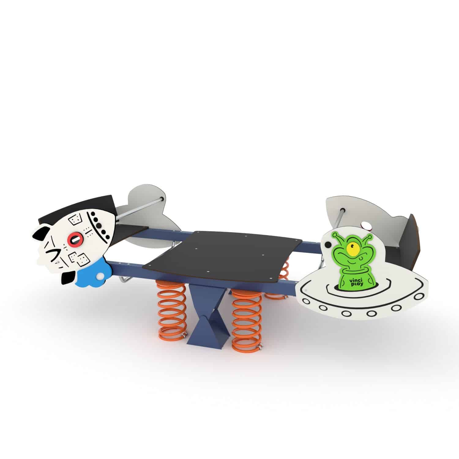 Een familiewip met voetsteunen, handgrepen en een balanceerplatform. Door de zijpanelen zit de jongste jeugd er net iets steviger op en kunnen volwassen ernaast zitten