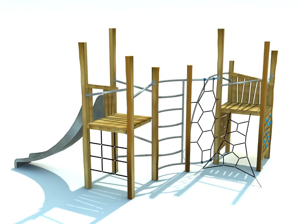 De Rob Roy-serie combineert geschaafd robiniahout met gegalvaniseerd staal voor maximale duurzaamheid en een tijdloze, natuurlijke look. De toestellen zijn ontworpen voor intensief, openbaar gebruik en vragen weinig onderhoud. Met de vele configuraties en uitbreidingen realiseer je voor elke locatie een onderscheidende speelplek met hoge speelwaarde.