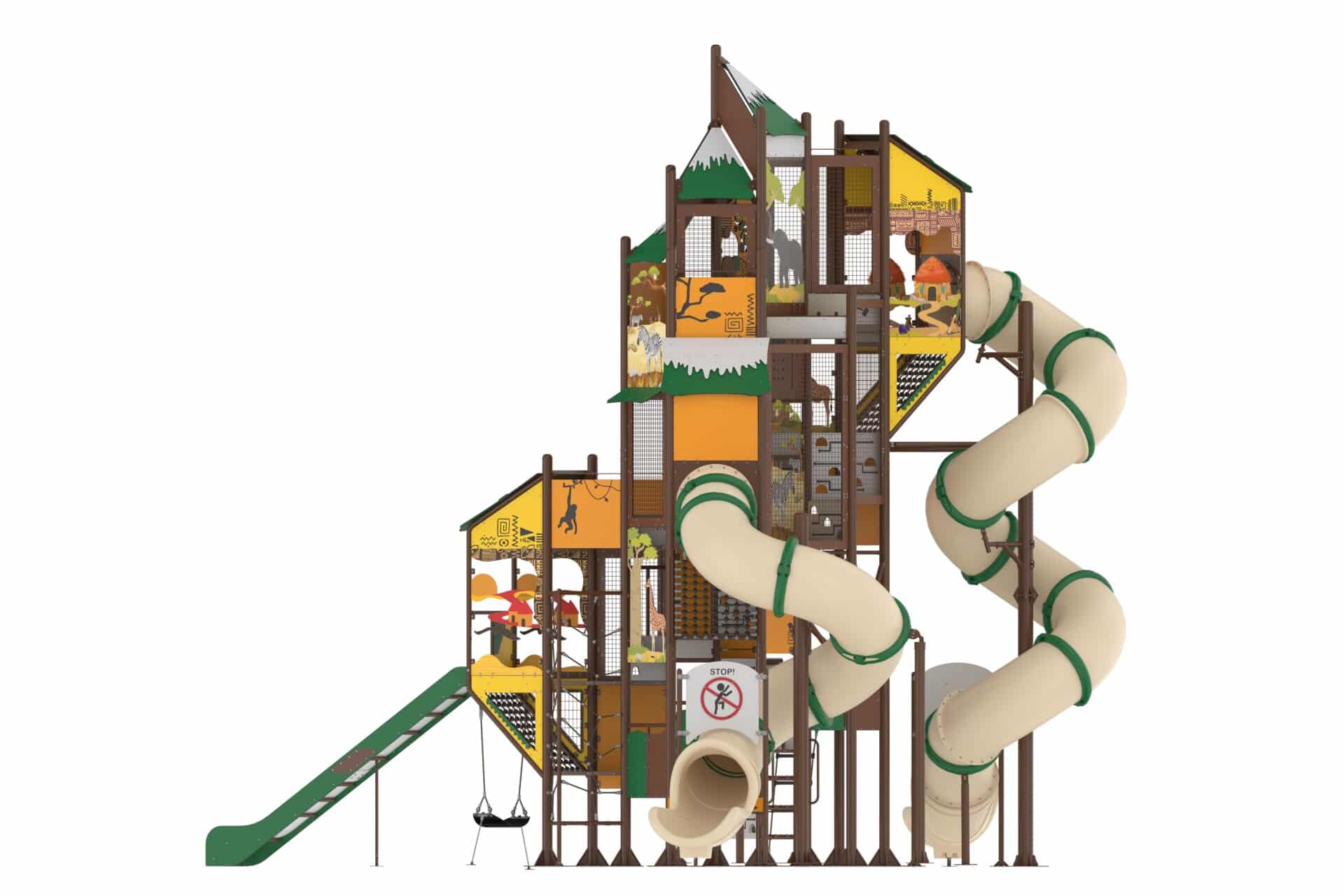 De Safari-serie biedt kinderen een avontuurlijke speelervaring met visuele elementen waarmee je je in de natuur van Afrika waant. De speciaal voor dit product ontworpen “Safari-visualisatie” stimuleert de verbeelding van kinderen en nodigt hen uit om hun eigen rollenspel te creëren. De Safari seris, met klim-, balanceer- en diverse speelelementen, trekt de aandacht van kinderen door de levendige kleuren en uitdagende spelmogelijkheden.