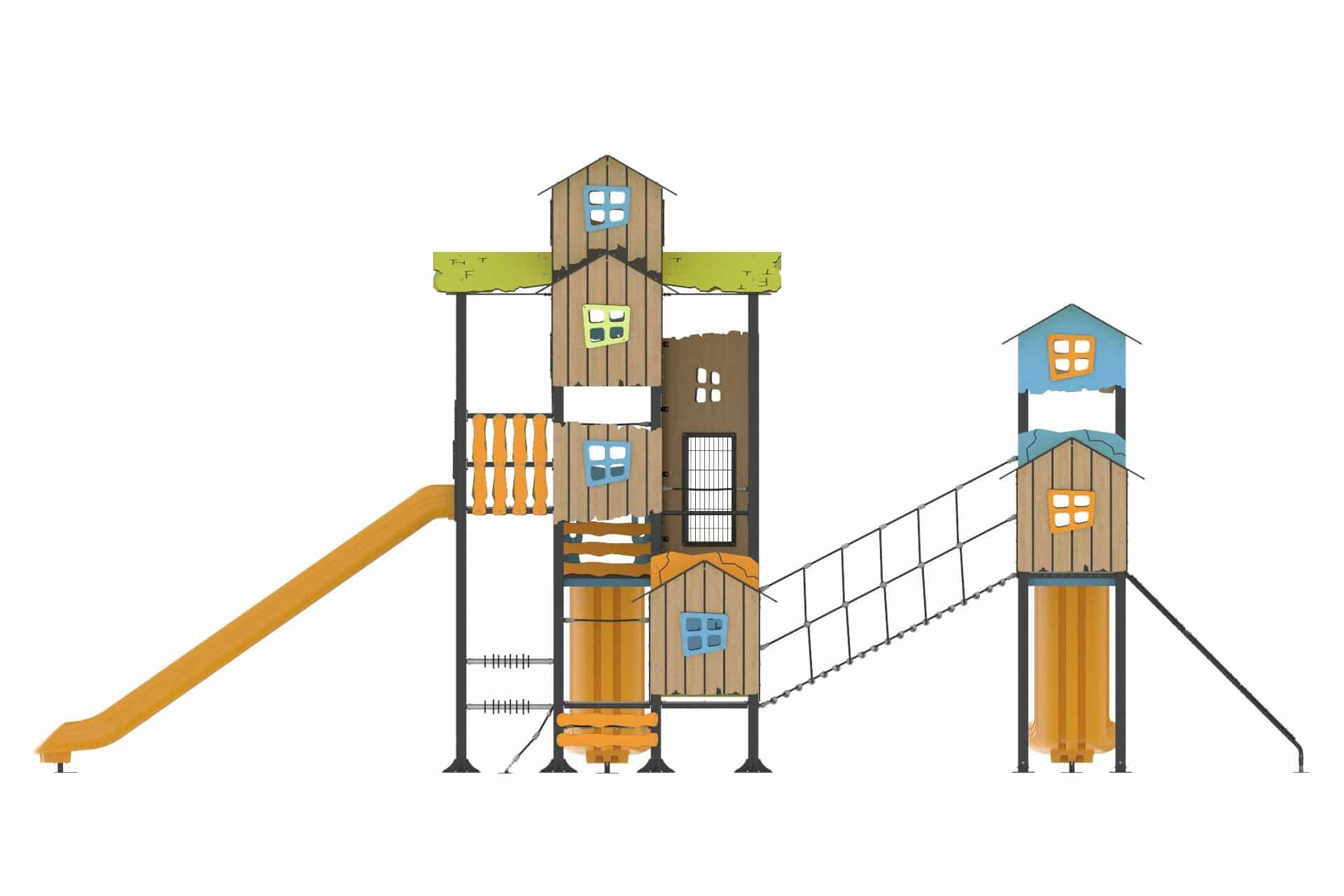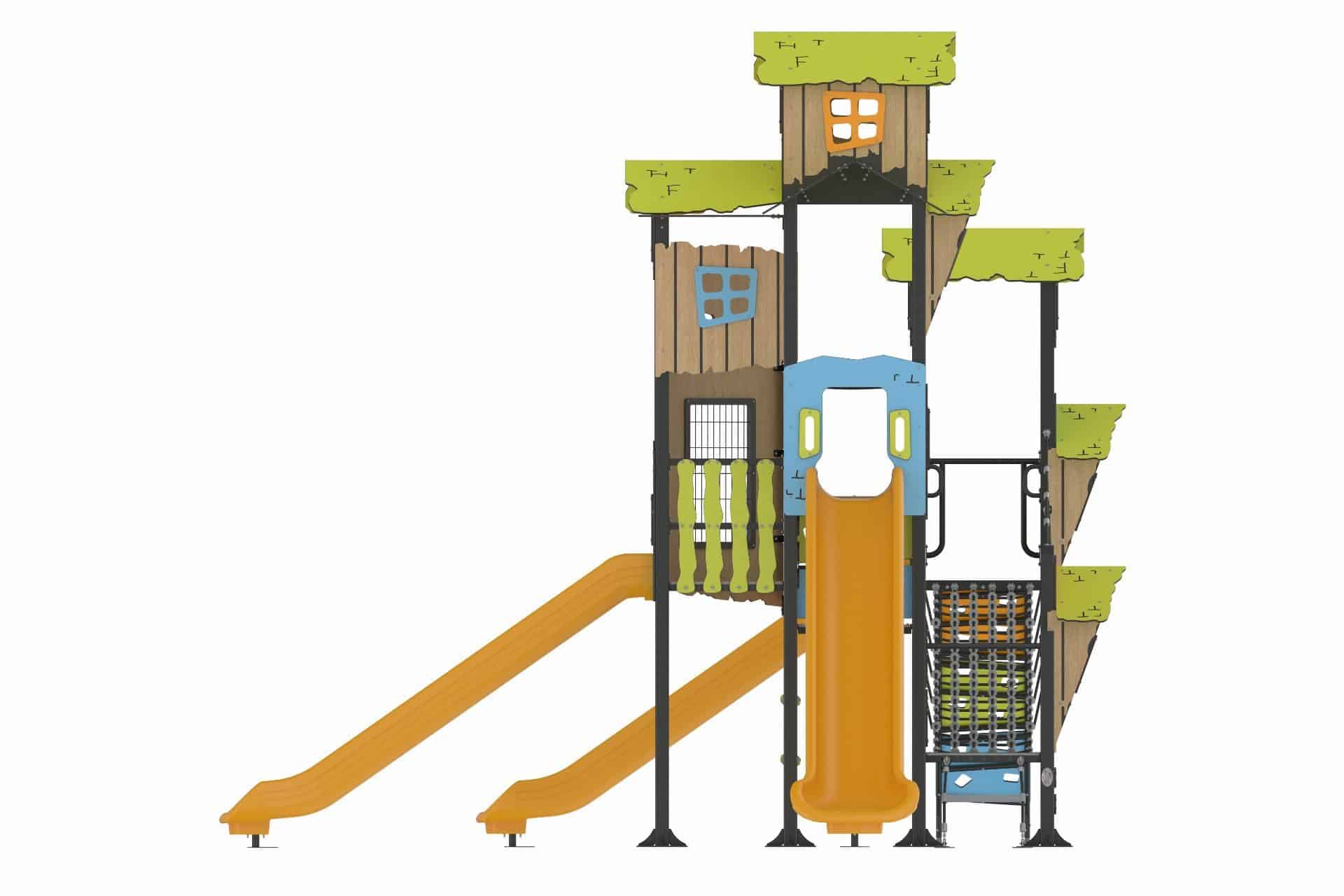 De Tetto-serie kenmerkt zich door speelcombinaties met een open structuur die wel aansluiten bij speelwensen en kleurcombinaties van vandaag de dag. Glijbanen met rvs glijvlak zijn optioneel beschikbaar voor dit artikel.