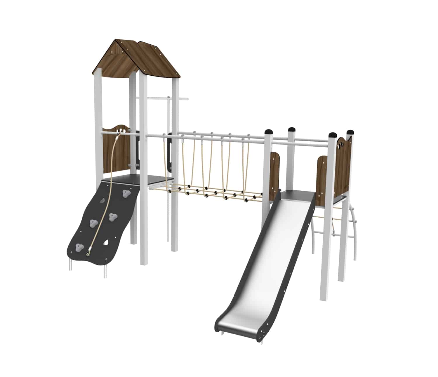 De STEEL-serie bestaat uit klassieke structuren die onbeperkt plezier bieden voor oudere kinderen. De apparatuur uit deze serie kan perfect worden aangepast aan de behoeften van kinderen en de beschikbare ruimte. Rijen van torens verbonden door verschillende aantrekkelijke beweegbare elementen zorgen voor een geweldig oefenterrein voor motorische coördinatie. Ze laten een grote groep kinderen tegelijkertijd spelen, wat helpt om relaties op te bouwen en ook teamwork en gezonde concurrentie leert.