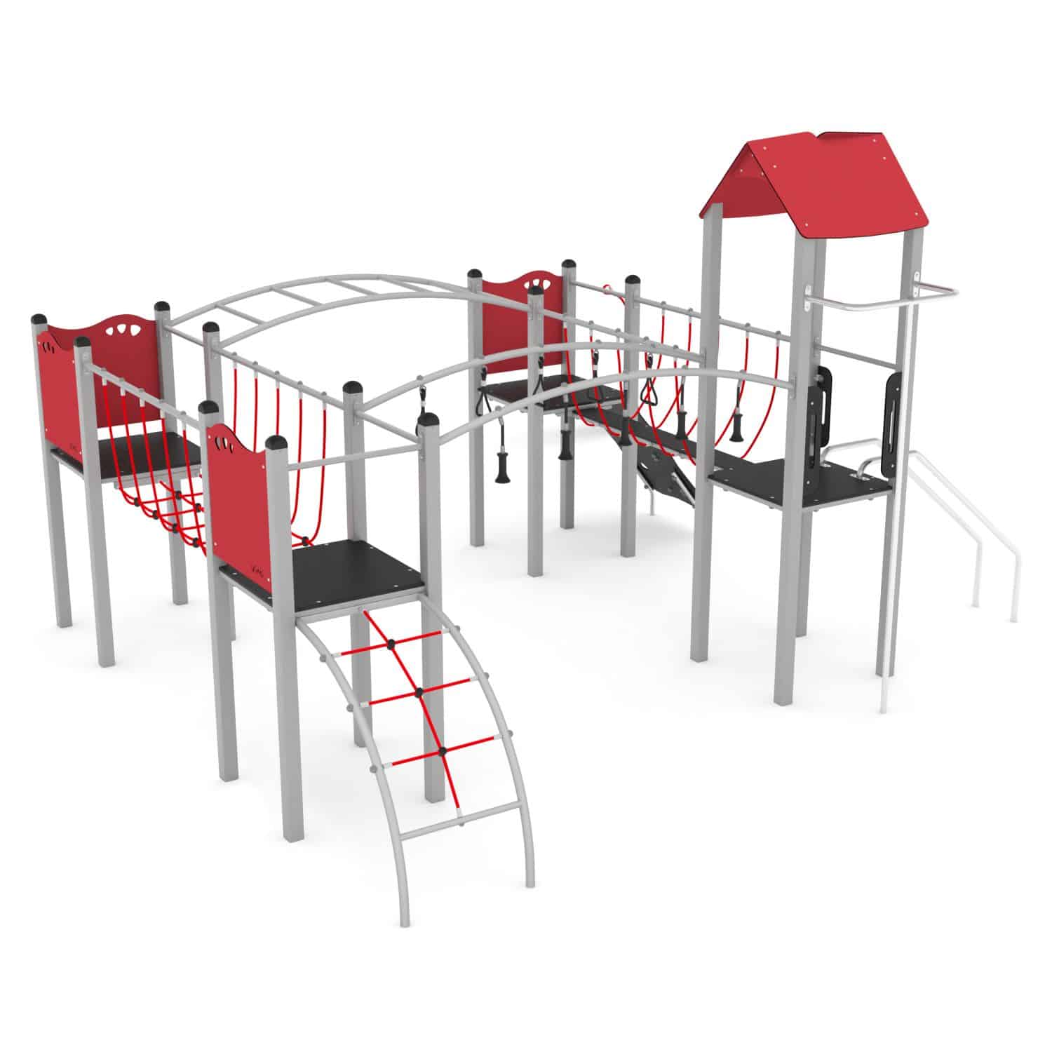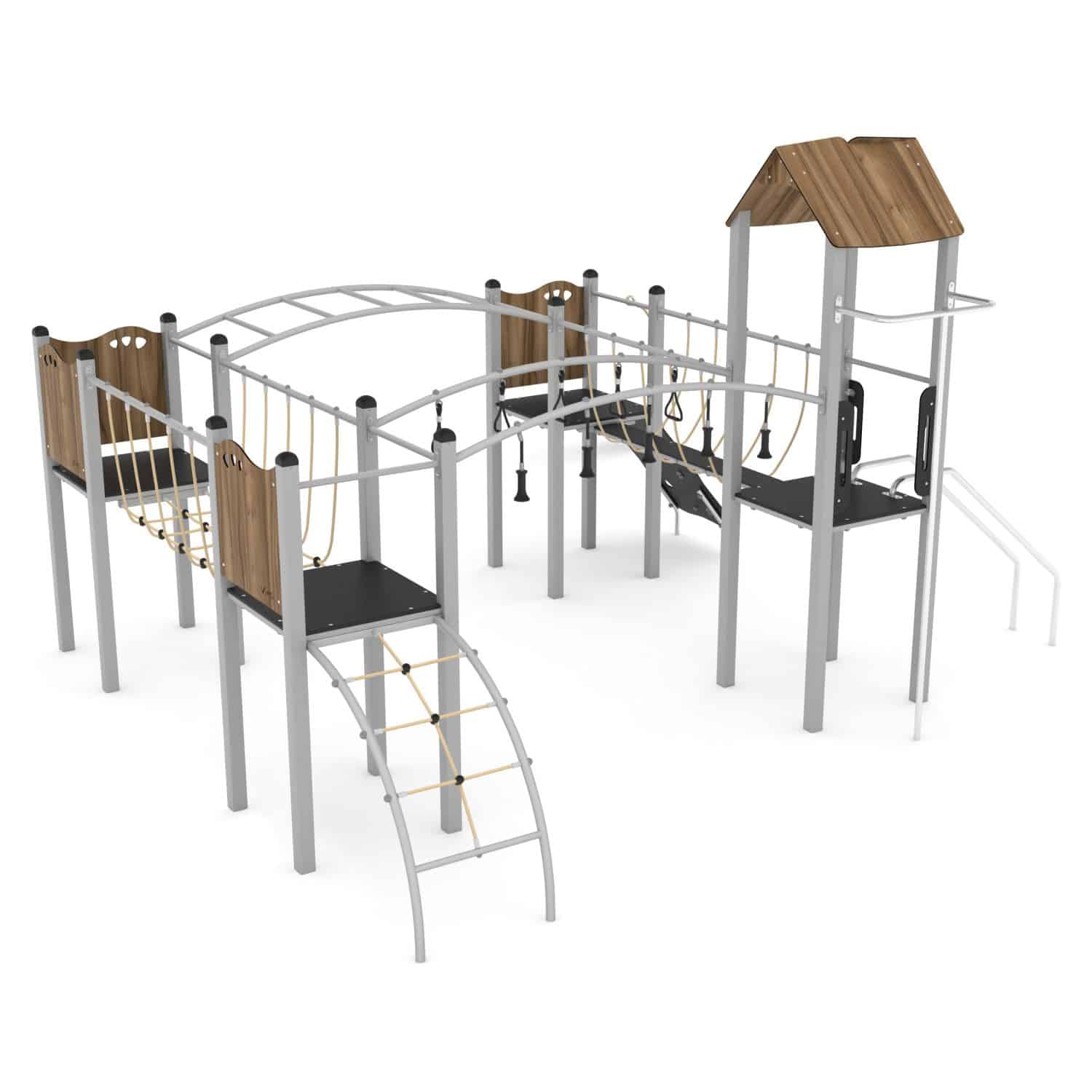 De STEEL-serie bestaat uit klassieke structuren die onbeperkt plezier bieden voor oudere kinderen. De apparatuur uit deze serie kan perfect worden aangepast aan de behoeften van kinderen en de beschikbare ruimte. Rijen van torens verbonden door verschillende aantrekkelijke beweegbare elementen zorgen voor een geweldig oefenterrein voor motorische coördinatie. Ze laten een grote groep kinderen tegelijkertijd spelen, wat helpt om relaties op te bouwen en ook teamwork en gezonde concurrentie leert.
