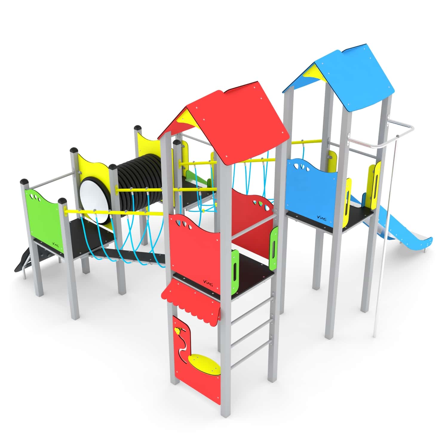 De STEEL-serie bestaat uit klassieke structuren die onbeperkt plezier bieden voor oudere kinderen. De apparatuur uit deze serie kan perfect worden aangepast aan de behoeften van kinderen en de beschikbare ruimte. Rijen van torens verbonden door verschillende aantrekkelijke beweegbare elementen zorgen voor een geweldig oefenterrein voor motorische coördinatie. Ze laten een grote groep kinderen tegelijkertijd spelen, wat helpt om relaties op te bouwen en ook teamwork en gezonde concurrentie leert.