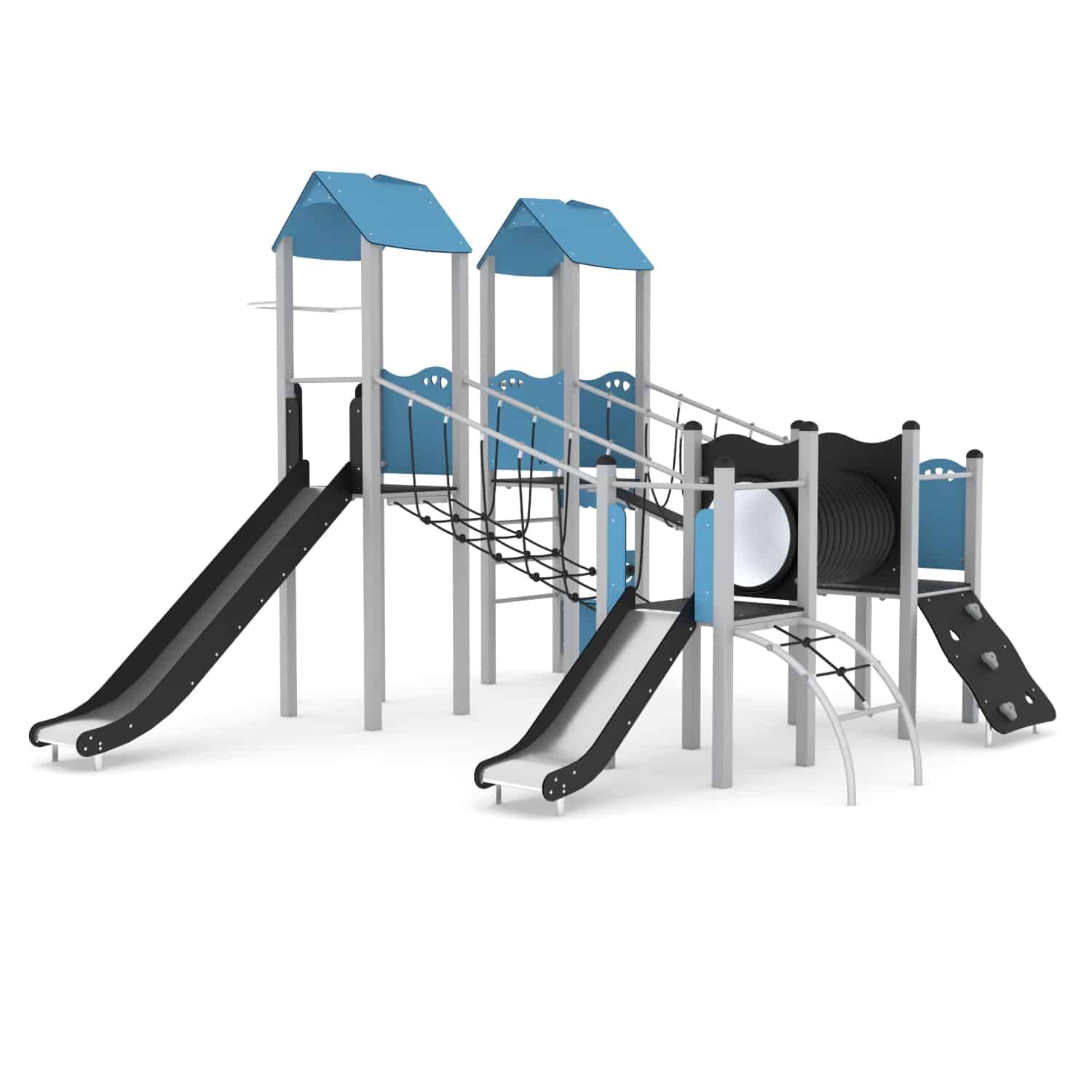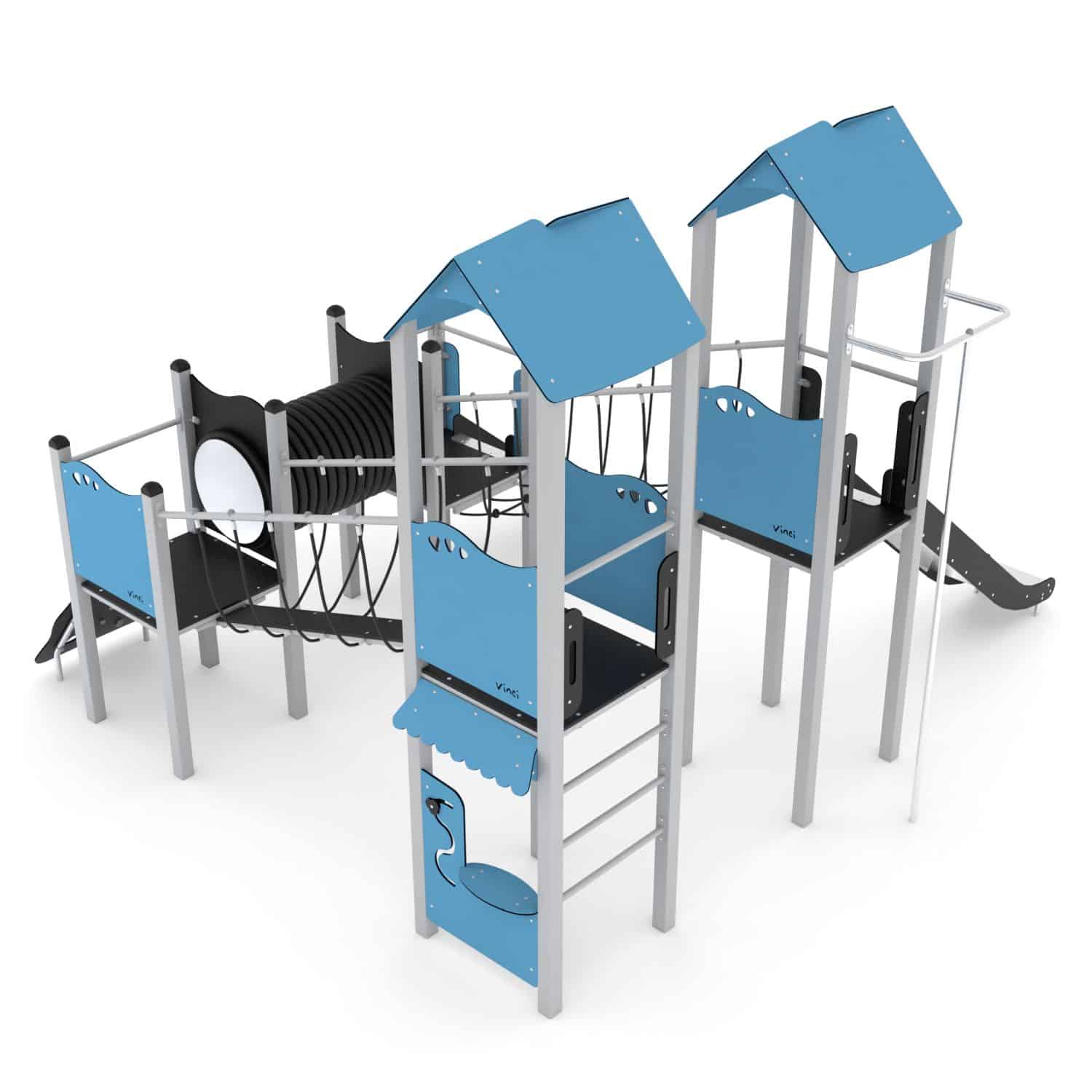 De STEEL-serie bestaat uit klassieke structuren die onbeperkt plezier bieden voor oudere kinderen. De apparatuur uit deze serie kan perfect worden aangepast aan de behoeften van kinderen en de beschikbare ruimte. Rijen van torens verbonden door verschillende aantrekkelijke beweegbare elementen zorgen voor een geweldig oefenterrein voor motorische coördinatie. Ze laten een grote groep kinderen tegelijkertijd spelen, wat helpt om relaties op te bouwen en ook teamwork en gezonde concurrentie leert.