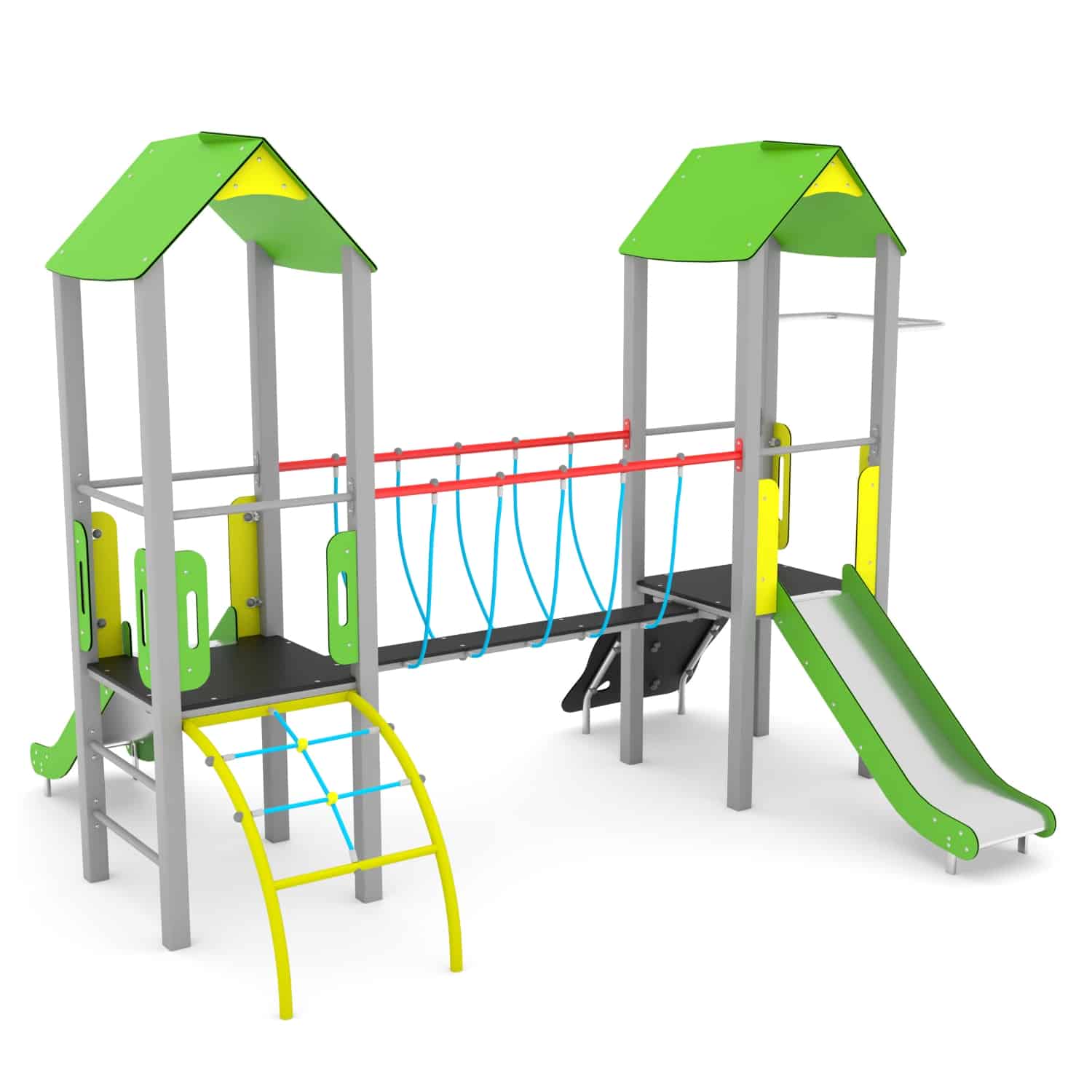De STEEL-serie bestaat uit klassieke structuren die onbeperkt plezier bieden voor oudere kinderen. De apparatuur uit deze serie kan perfect worden aangepast aan de behoeften van kinderen en de beschikbare ruimte. Rijen van torens verbonden door verschillende aantrekkelijke beweegbare elementen zorgen voor een geweldig oefenterrein voor motorische coördinatie. Ze laten een grote groep kinderen tegelijkertijd spelen, wat helpt om relaties op te bouwen en ook teamwork en gezonde concurrentie leert.