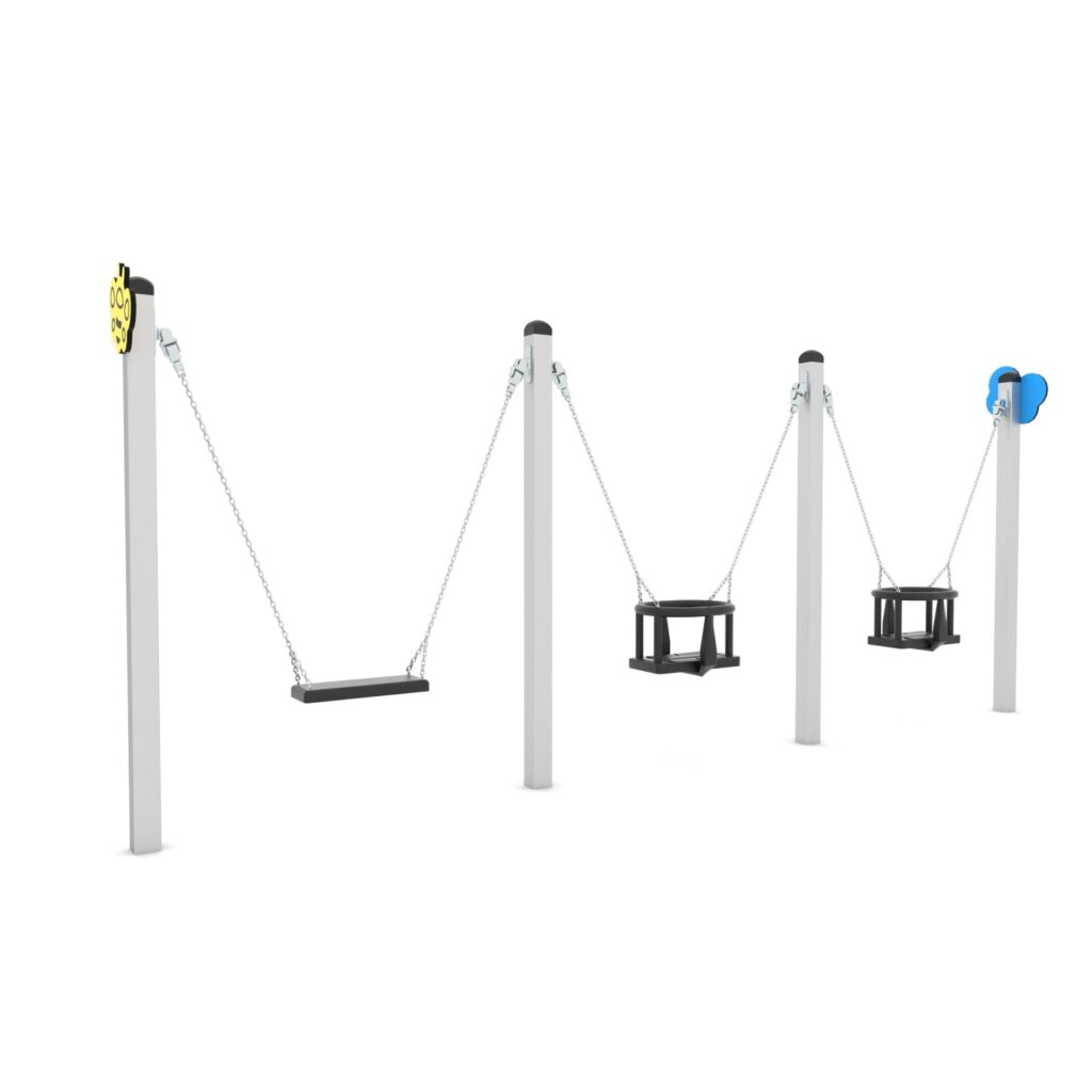 Een fraai en degelijk schommelelement voor de jongste schommelaars of wanneer de ruimte beperkt is. Naar wens kunnen de zitjes gewisseld worden.