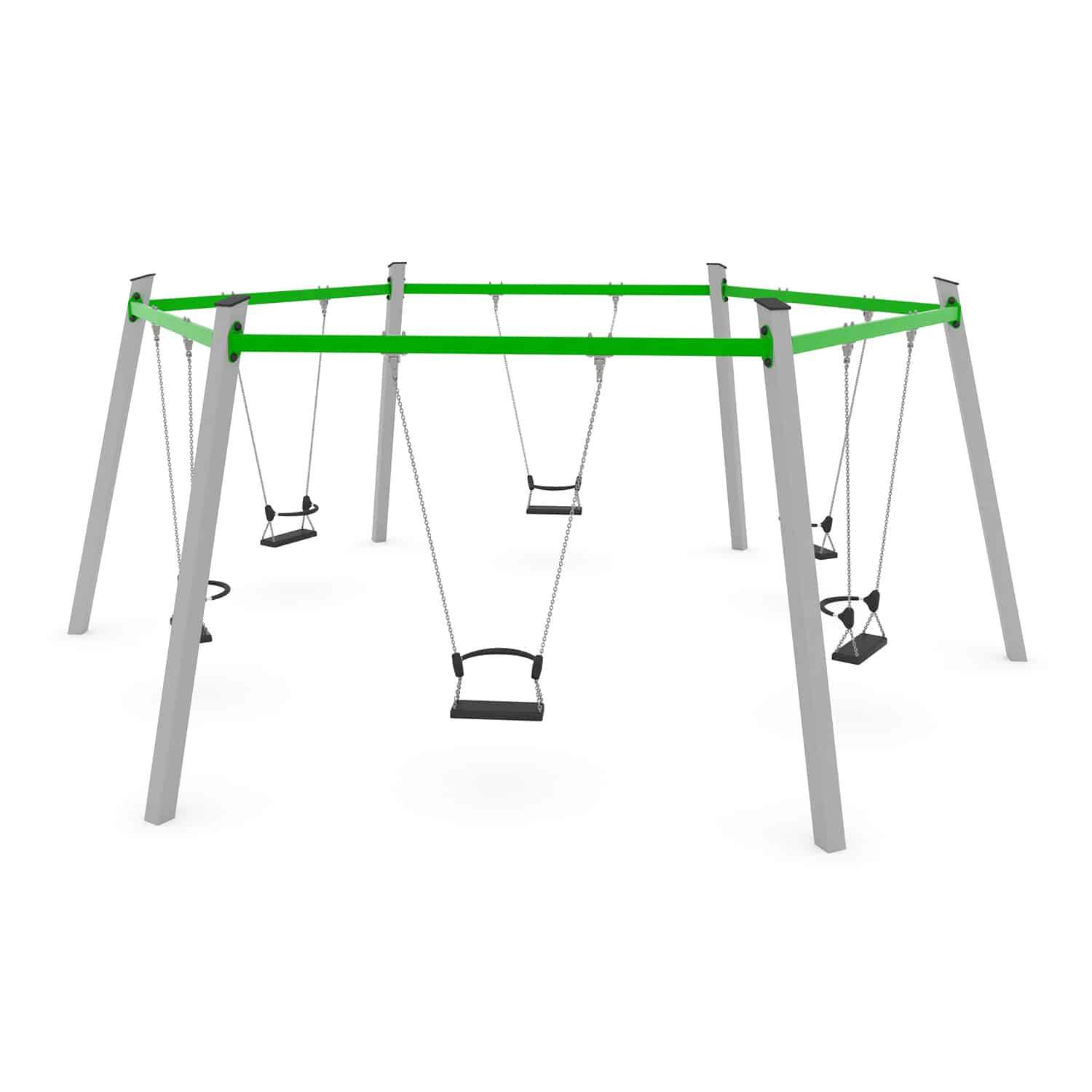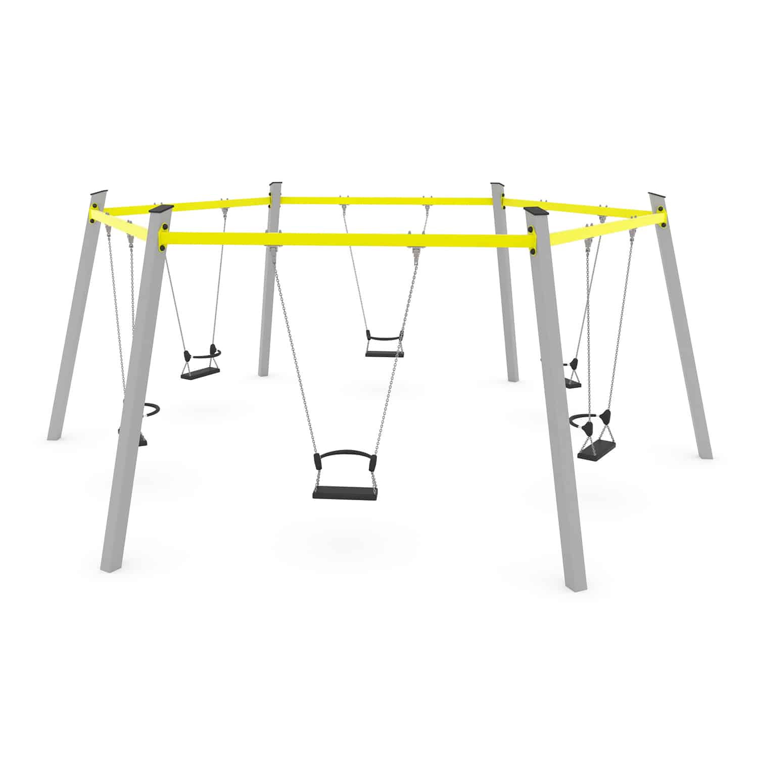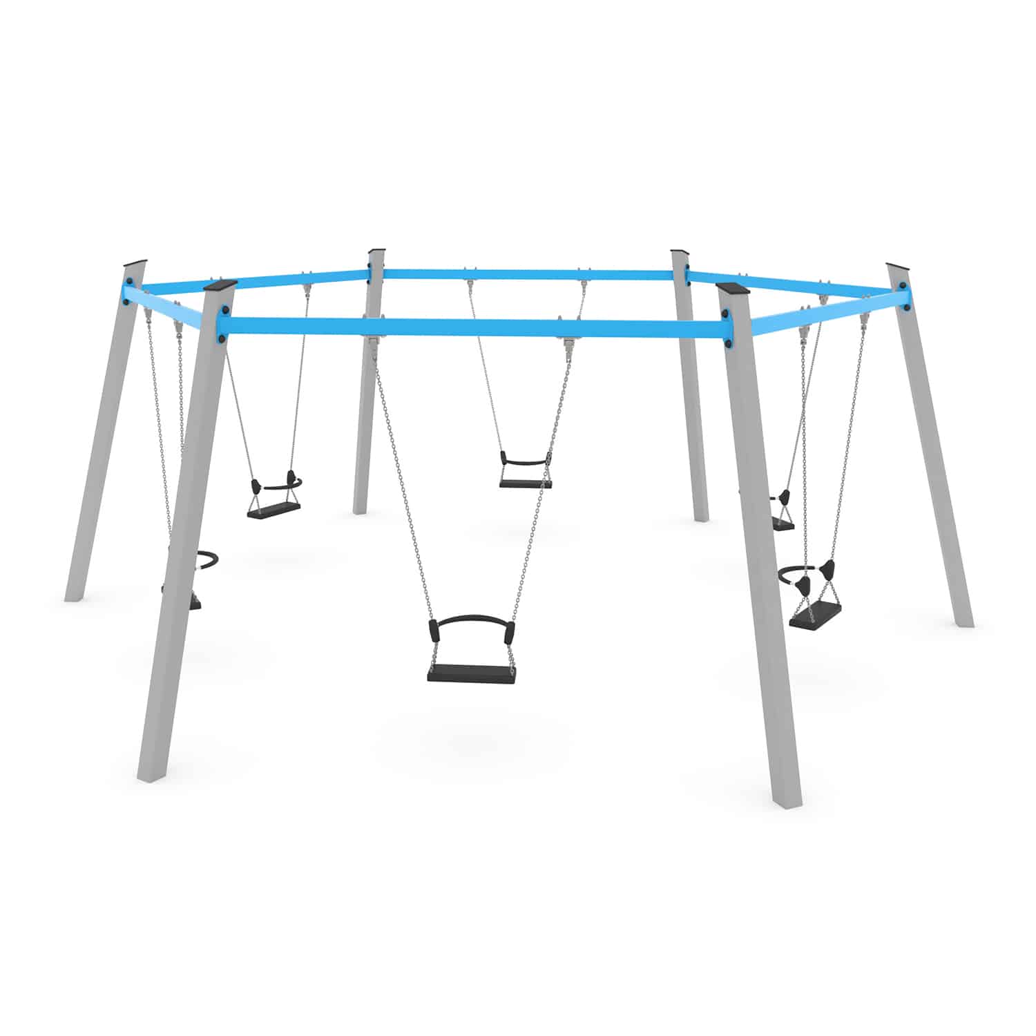 Een zesvoudige schommel is een groot succes op een speelplek als de ruimte het toelaat. Samen met je vrienden, ouders of misschien wel met opa of oma.