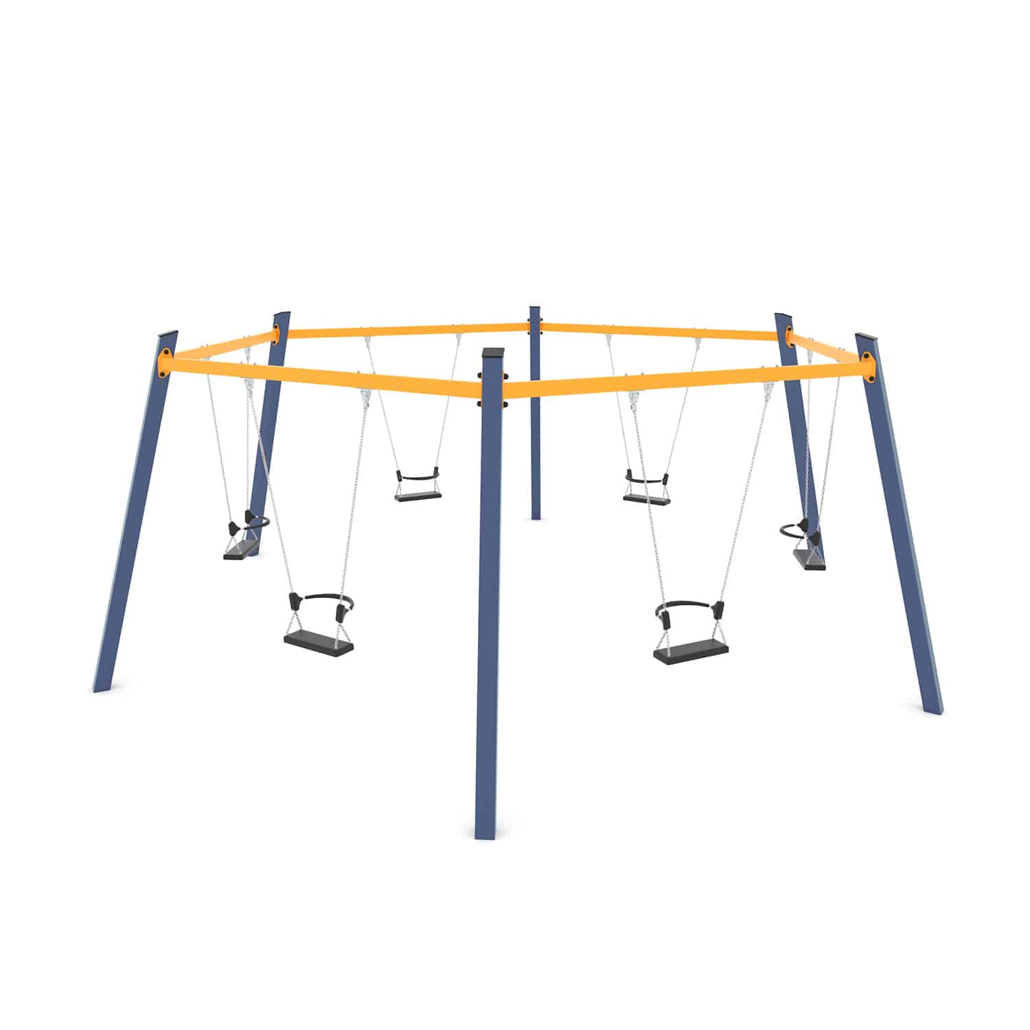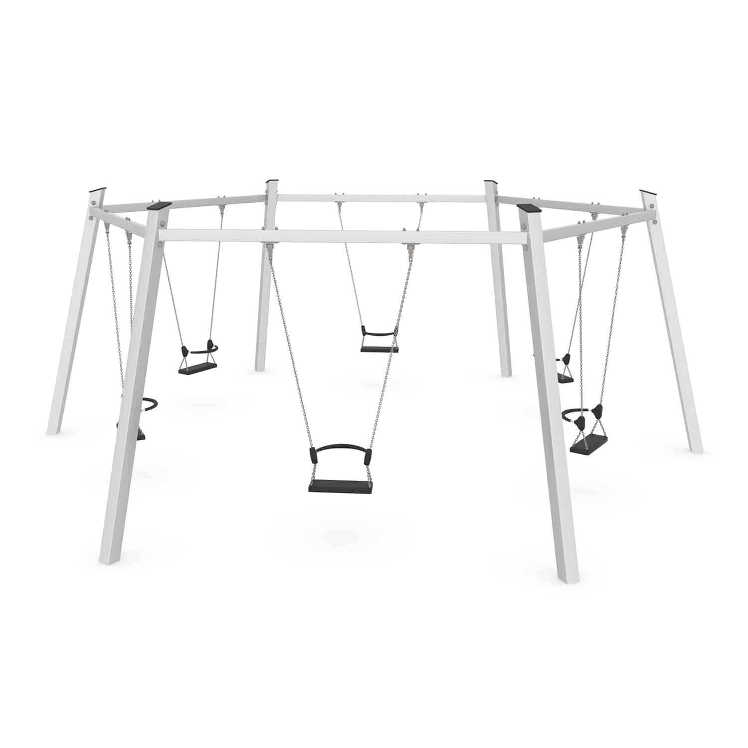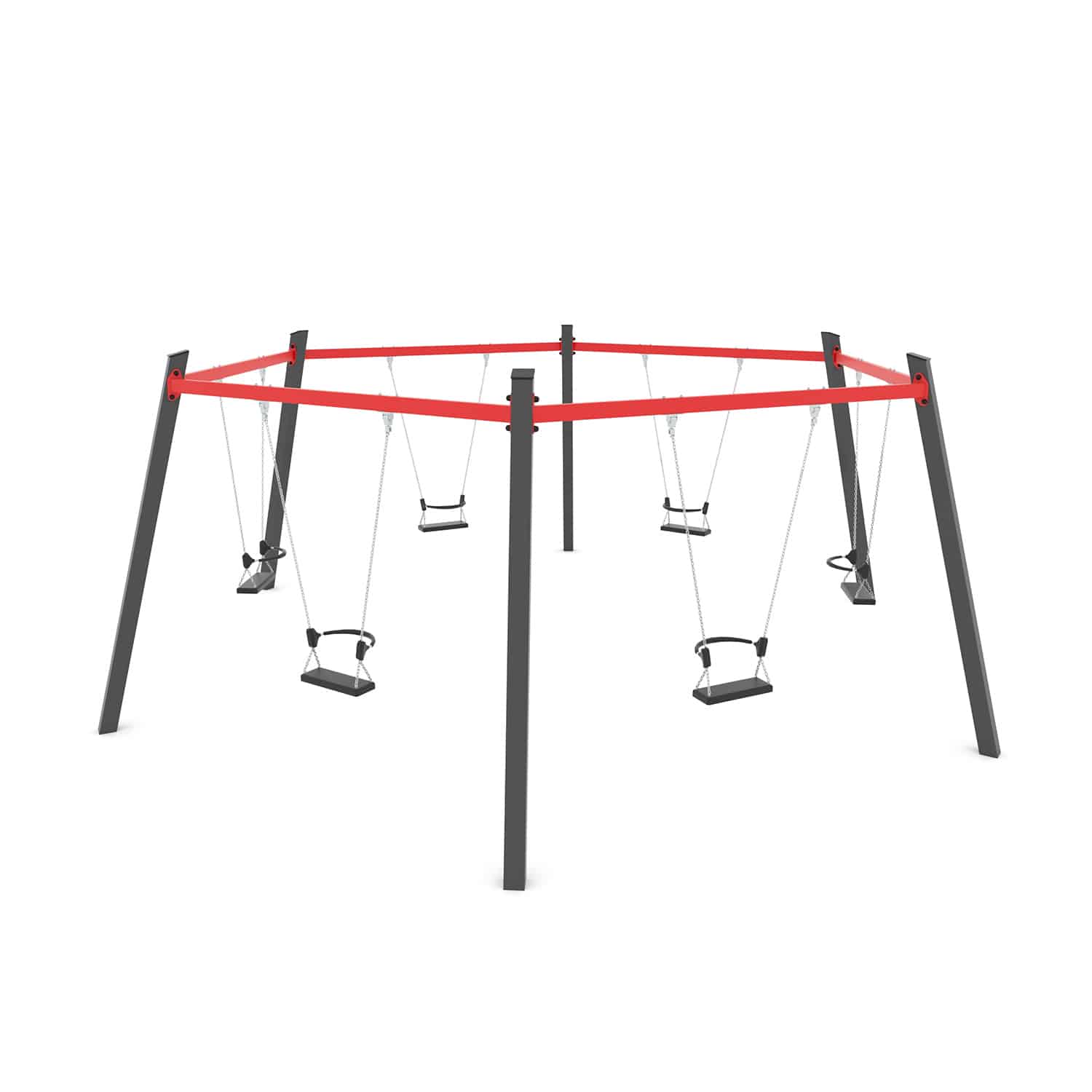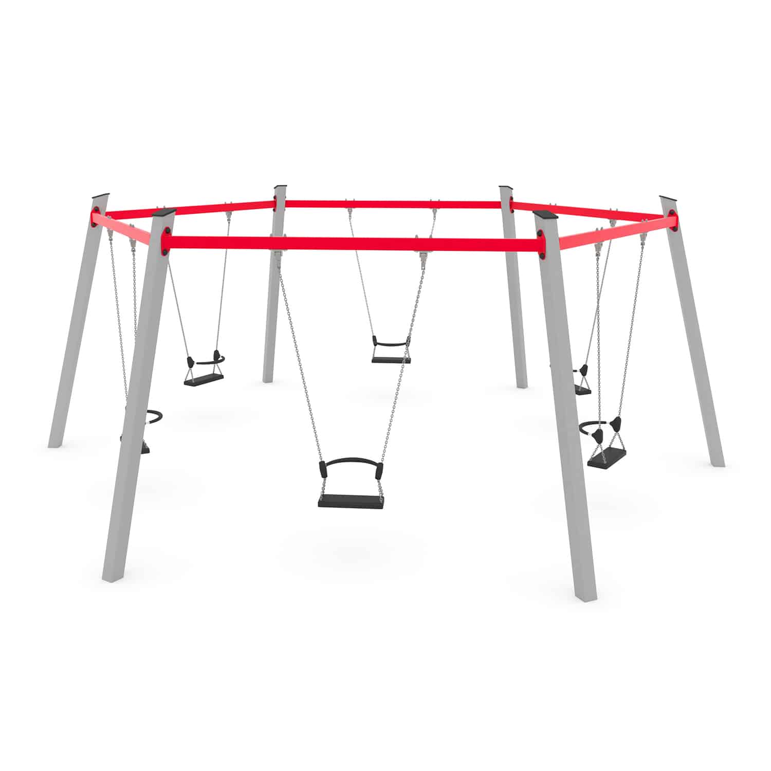 Een zesvoudige schommel is een groot succes op een speelplek als de ruimte het toelaat. Samen met je vrienden, ouders of misschien wel met opa of oma.
