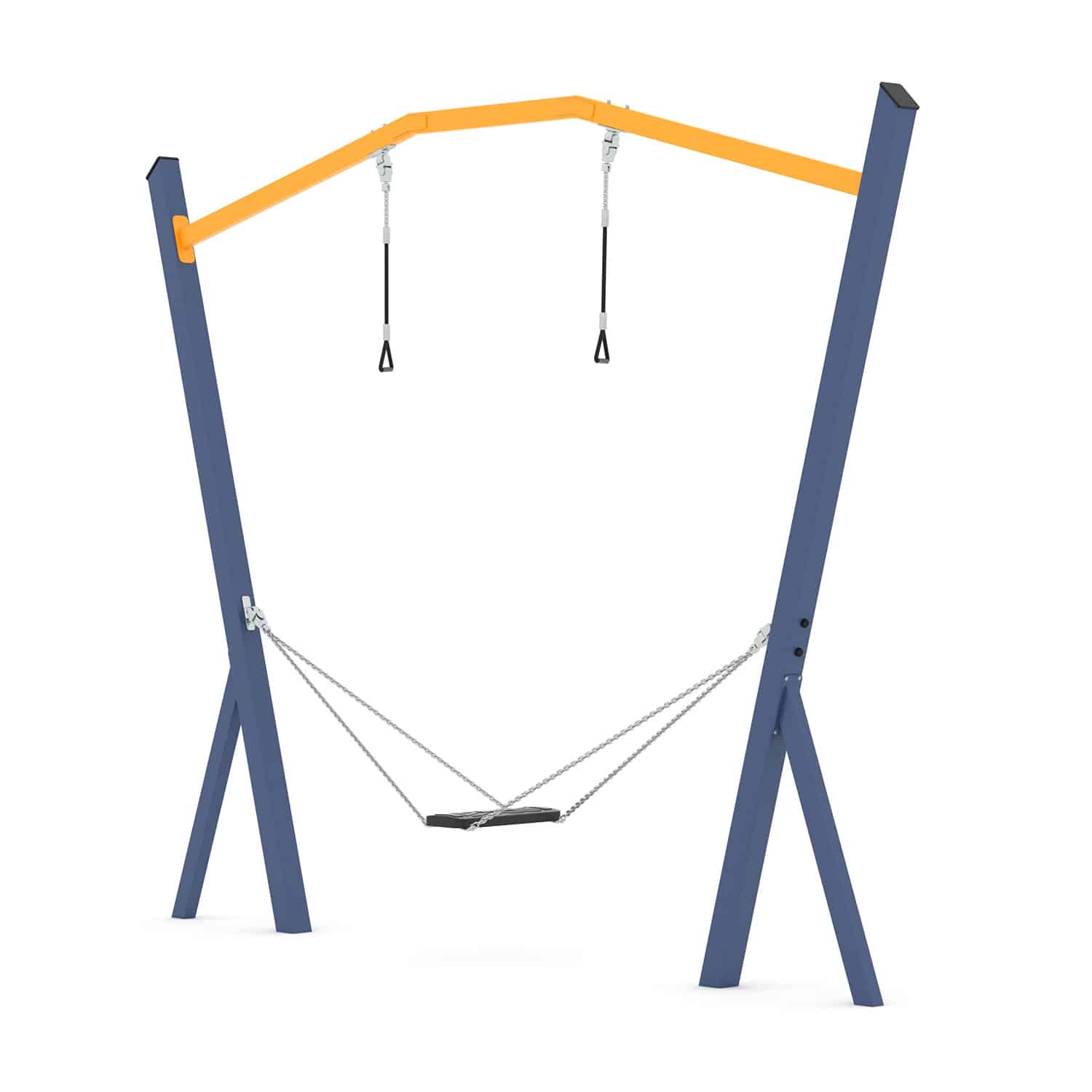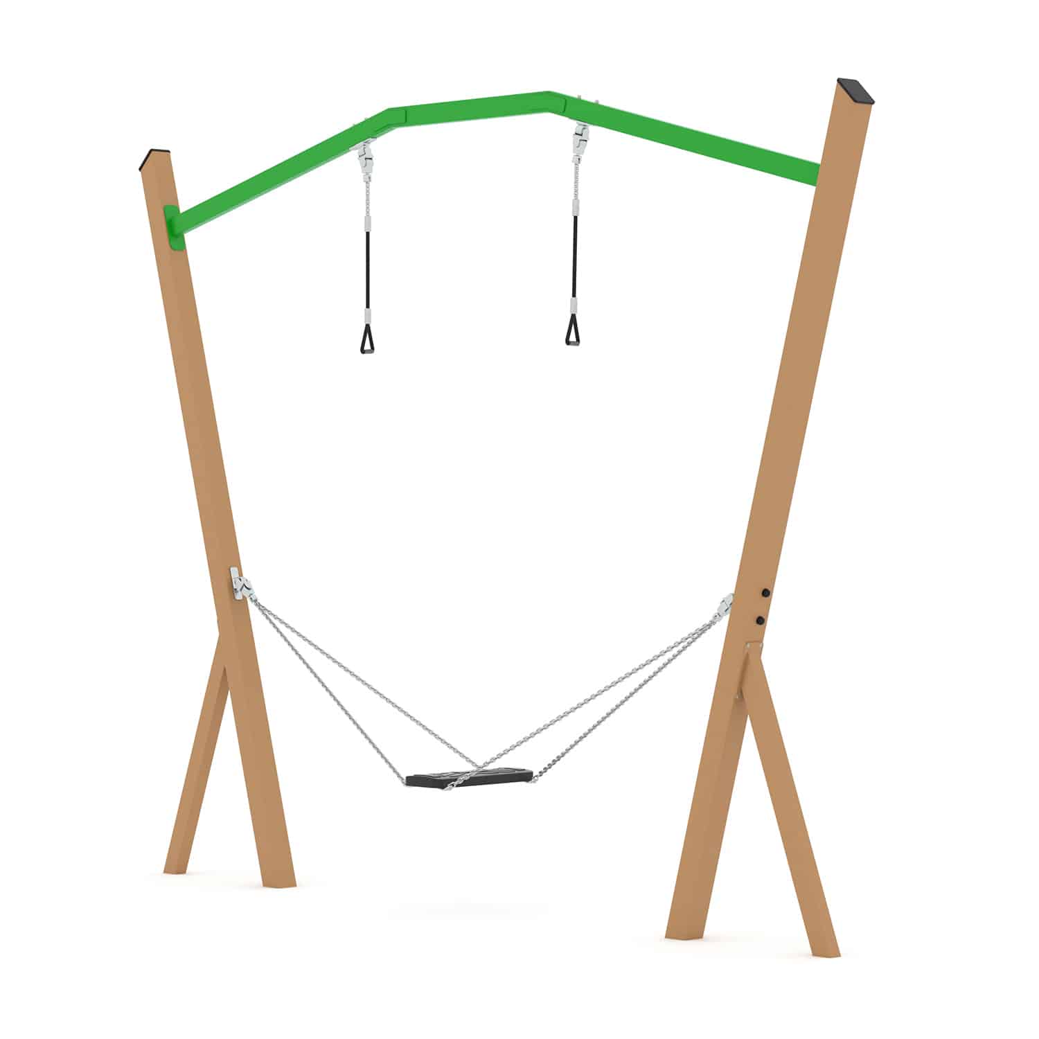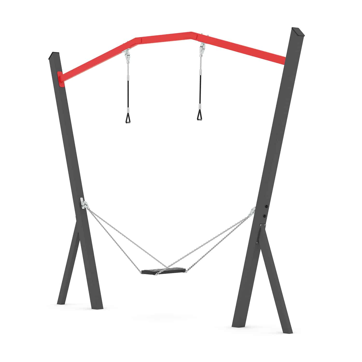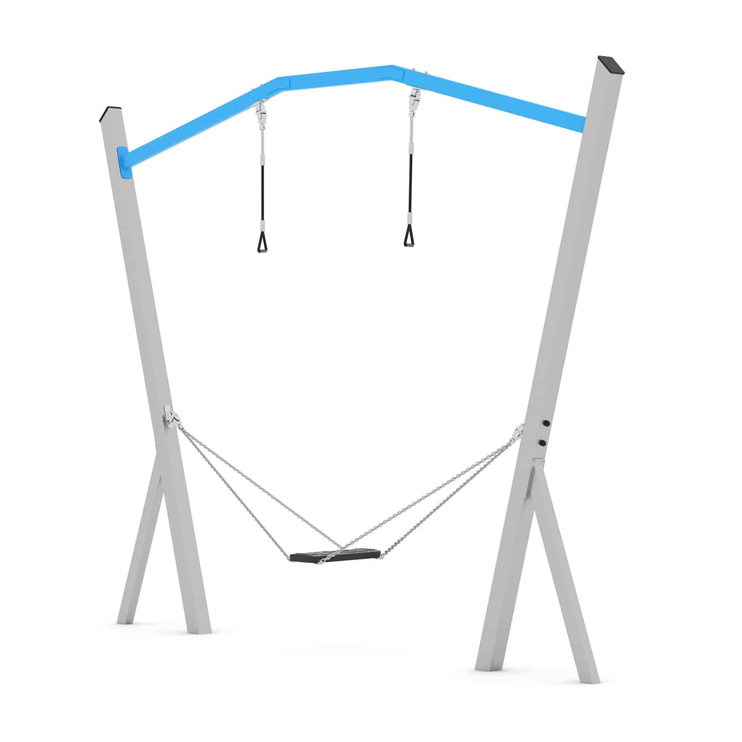 Surfen op het droge doe je met deze Surf-schommel, een fysieke uitdaging waarbij het ook op je armen aankomt!