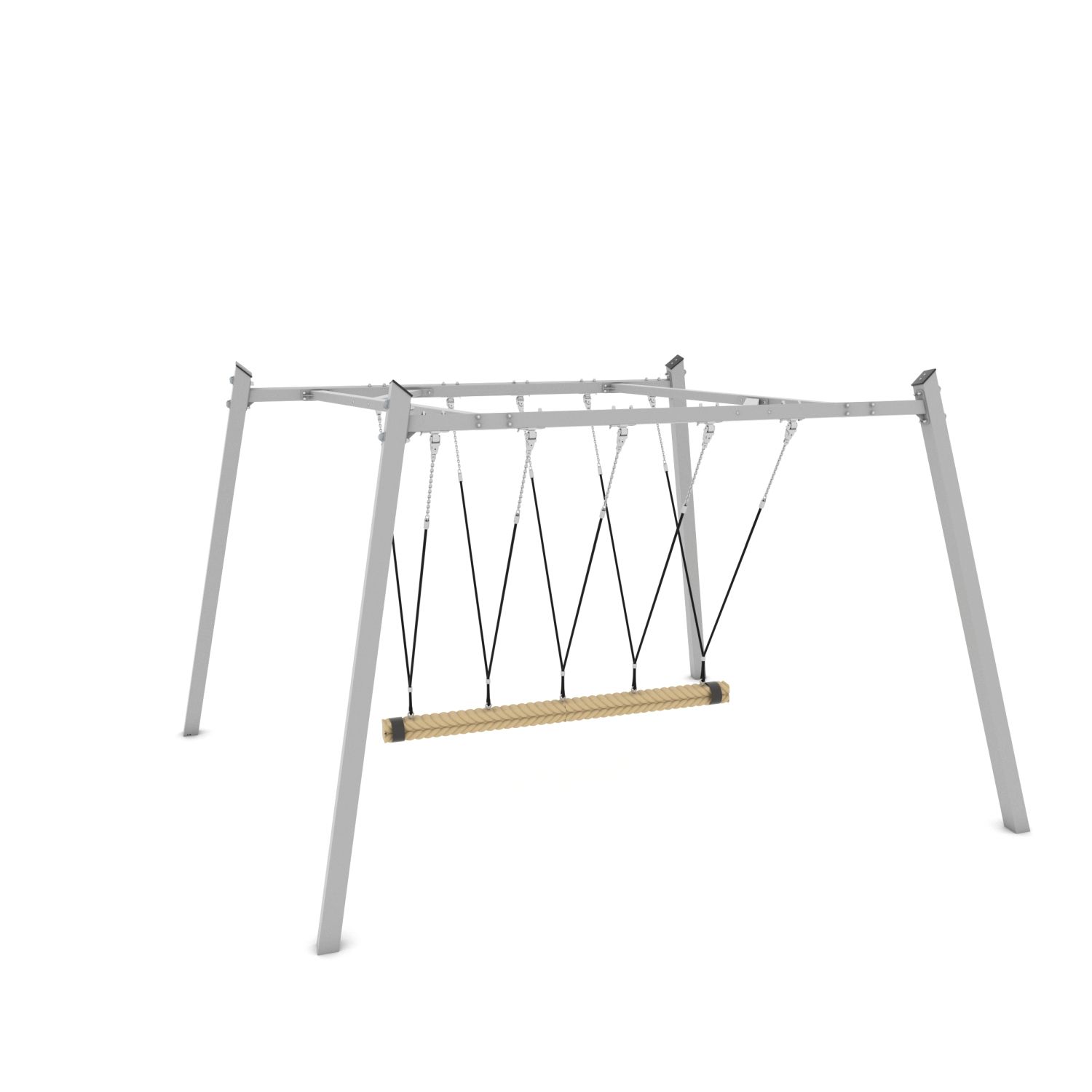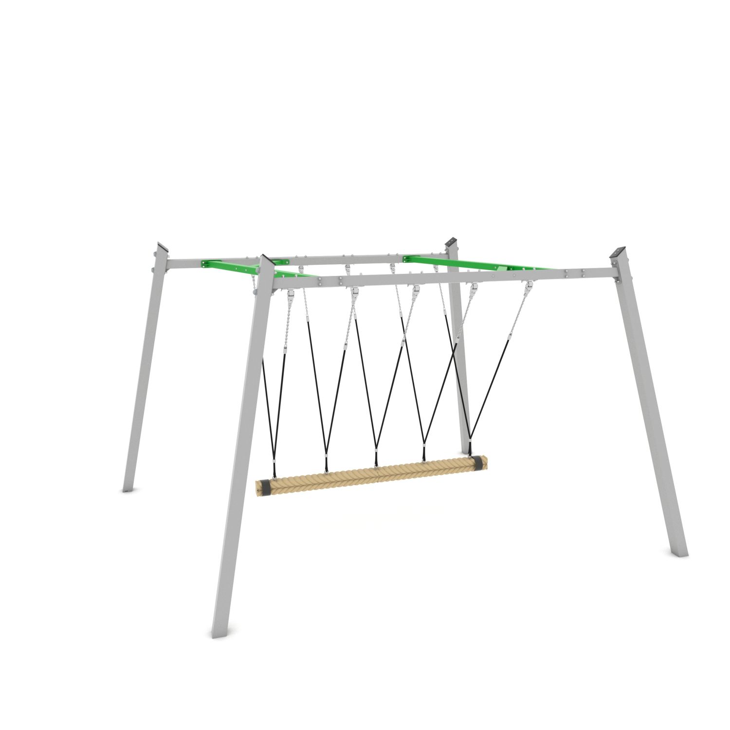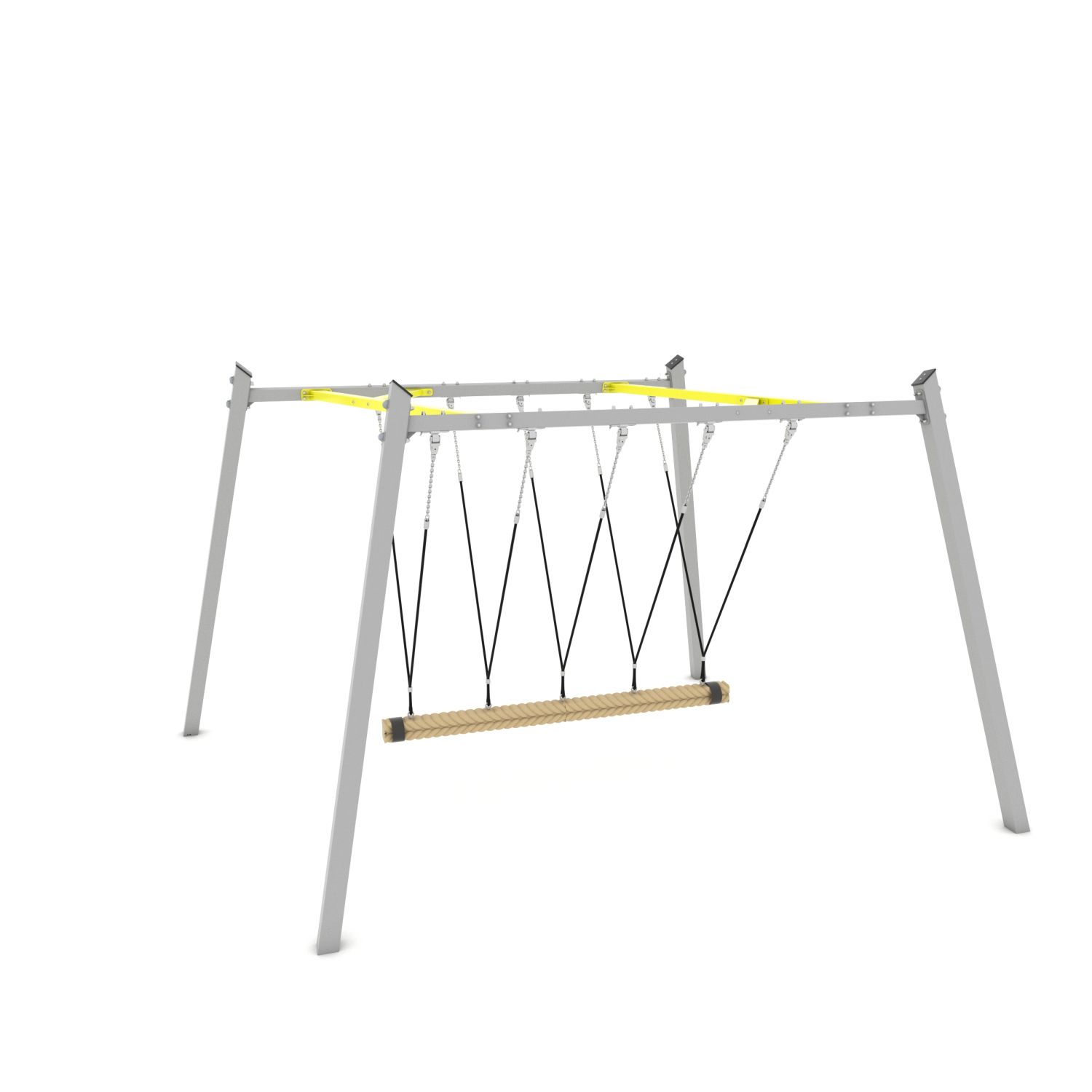 Stap op de Familieschommel en breng met elkaar het kokostouw in beweging. Train je evenwicht en werk samen.