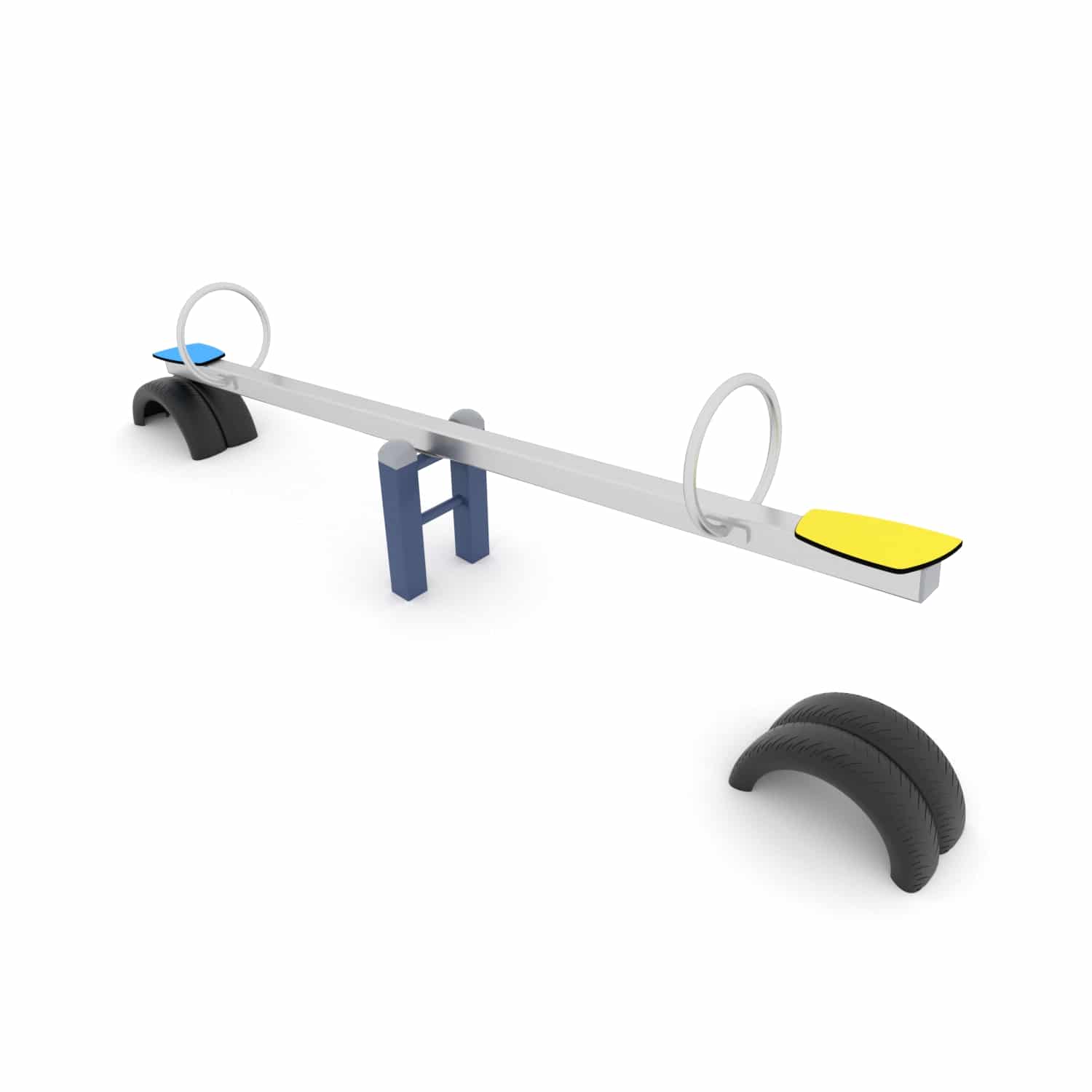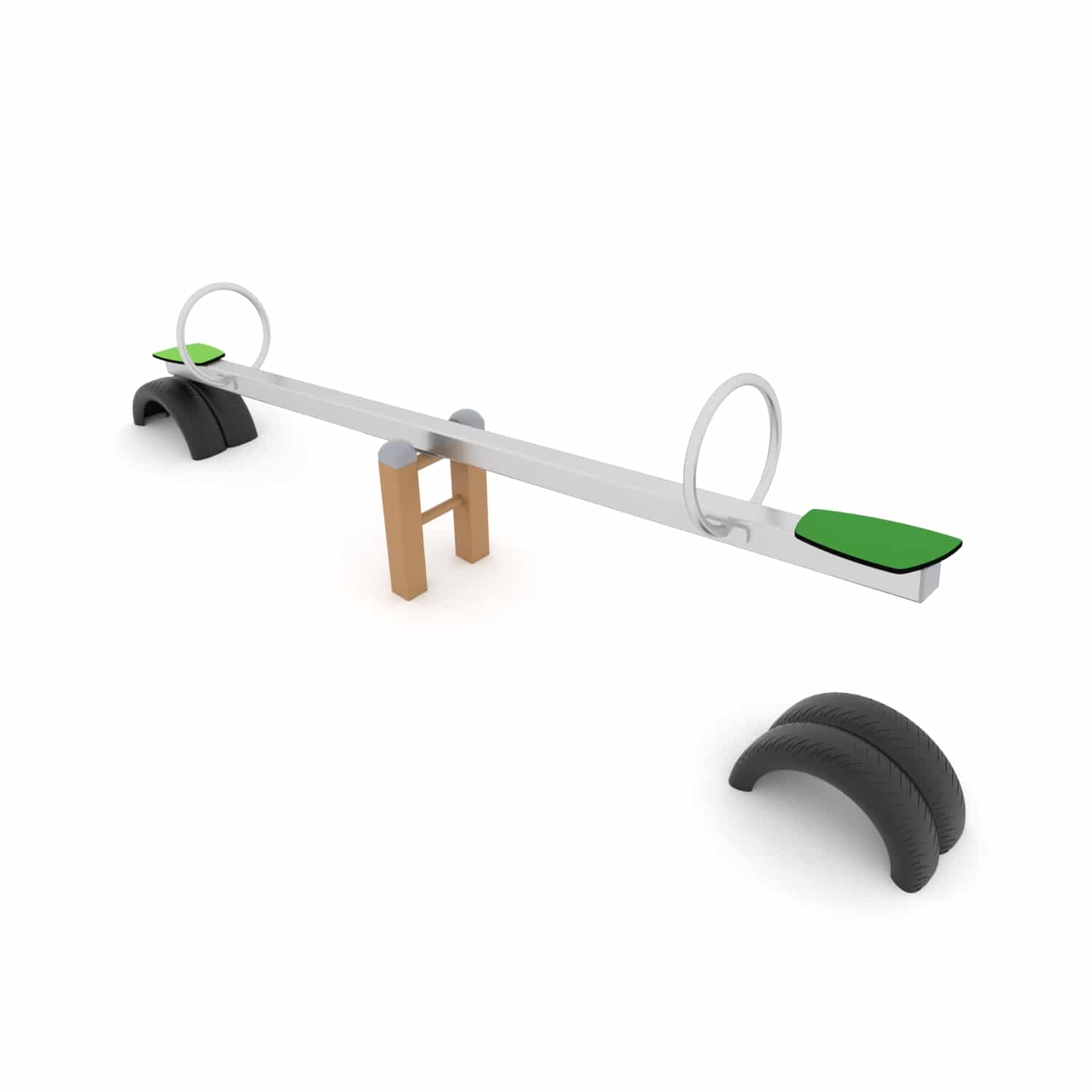Deze traditionele balkenwip is voor twee personen en voorzien van autobanden als dempers. Desgewenst is hier een nog duurzamere ‘bouncer’ voor leverbaar.